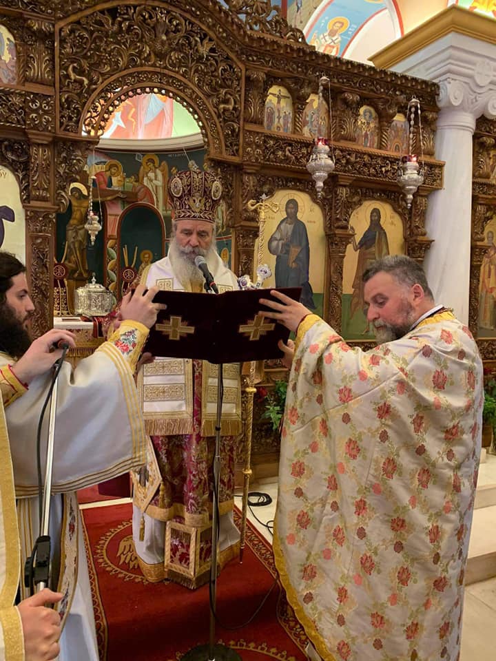 Ακολούθησε Δοξολογία και ο Σεβασμιότατος Ποιμενάρχης μας ανέπεμψε ενώπιον της Τιμίας Κάρας του Νεομάρτυρος ευχή για την αποτροπή της λοιμικής νόσου, και για τους ασθενείς.