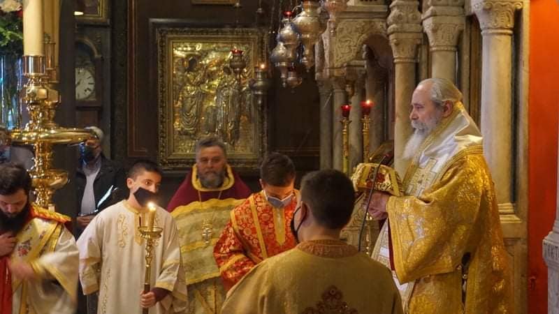Με λαμπρότητα τελέσθηκε την 28η Ιανουαρίου 2021, η Αρχιερατική Θ.Λειτουργία στον Ι.Καθεδρικό Ύδρας για τα Ονομαστήρια του Σεβασμιωτάτου Ποιμενάρχου μας.Ομίλησε ο Πανοσ. Πρωτοσύγκελλος Αρχιμ.π. Νεκτάριος Δαρδανός.Προ της απολύσεως ο Σεβασμιωτάτος ευχαρίστησε συγκινημένος όλους και δέχθηκε δώρο διά χειρός του Πανοσ. Πρωτοσυγκέλλου εκ μέρους των κληρικών της Ι.Μητροπόλεως.