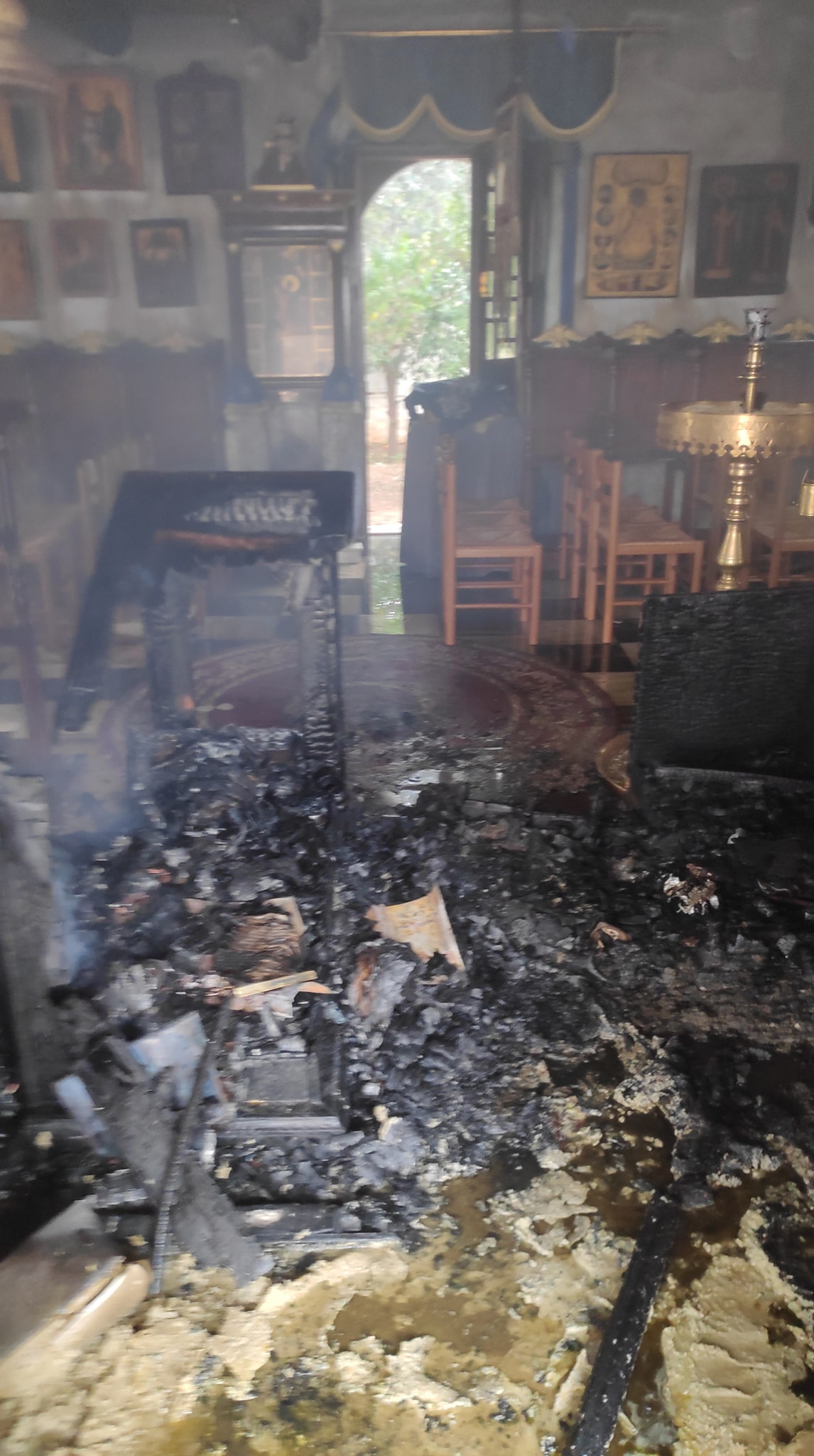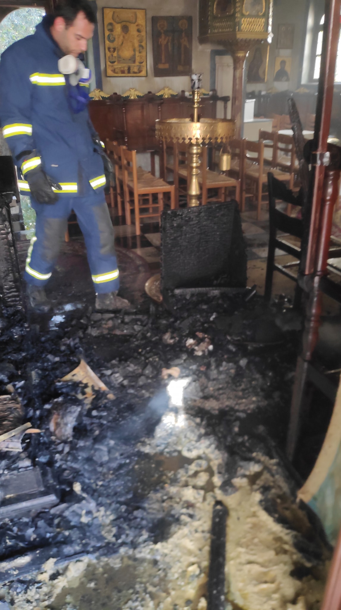 Από την πυρκαγιά προκλήθηκαν μόνο υλικές ζημιές στον Ιερό Ναό.