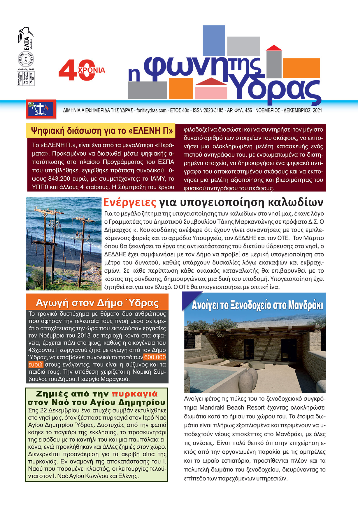 Κυκλοφόρησε το τεύχος (Αρ. Φύλ. 456) της "Φωνής της Ύδρας" με όλα τα νέα του νησιού για το δίμηνο που πέρασε αλλά και θέματα για ό,τι ακολουθεί.
