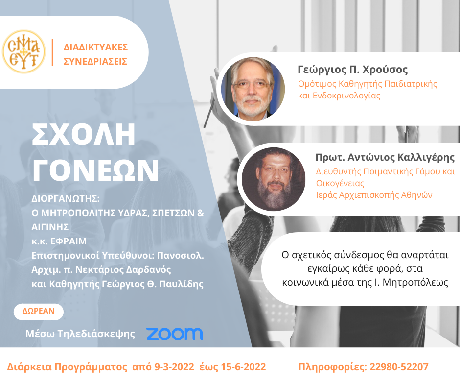 Πρόκειται για τις διαδικτυακές συνεδριάσεις της Σχολής Γονέων για το 2022.