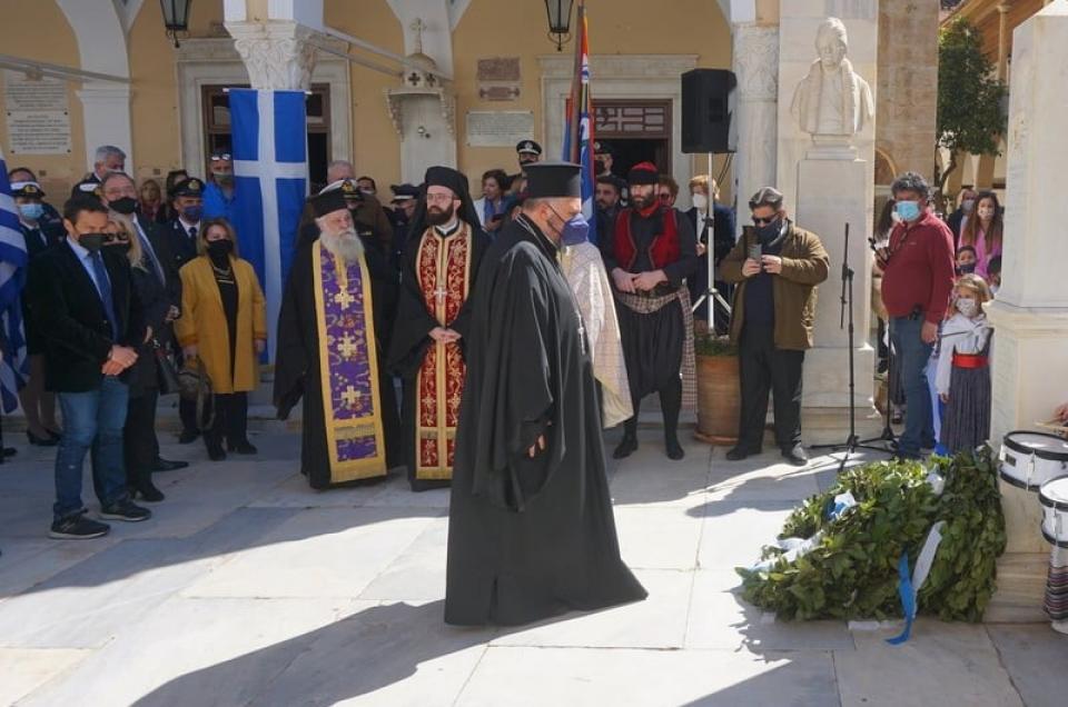Σήμερα το πρωί έγινε για πρώτη φορά κατάθεση στεφάνου κατόπιν ανακοινώσεως από τον Αντιδήμαρχο Γ. Μπελεγρή, από τον Αιδεσιμολογιότατο Πρωτοπρεσβύτερο π. Ακίνδυνο Δαρδανό, Γενικό Αρχιερατικό Επίτροπο της Ι. Μητροπόλεως Ύδρας. Τα ερωτήματα όμως που γεννήθηκαν είναι τα ακόλουθα: "Προβλέπεται να καταθέτει στεφάνι στην εθνική μας εορτή ο Σεβασμιότατος Μητροπολίτης ΕΦΡΑΙΜ ή ο εκάστοτε εκπρόσωπός του; Και αν για λόγους τιμής και ευγενείας ο Δήμος Ύδρας επιθυμεί να καταθέσει στεφάνι ο Ποιμενάρχης μας ή ο εκάστοτε εκπρόσωπός του, γιατί είπαν στον Αιδεσιμολογιότατο Πρωτ. πατέρα Ακίνδυνο Δαρδανό να καταθέσει τελευταίος και όχι πρώτος -βάσει του τυπικού- το στεφάνι στο Ηρώο;"