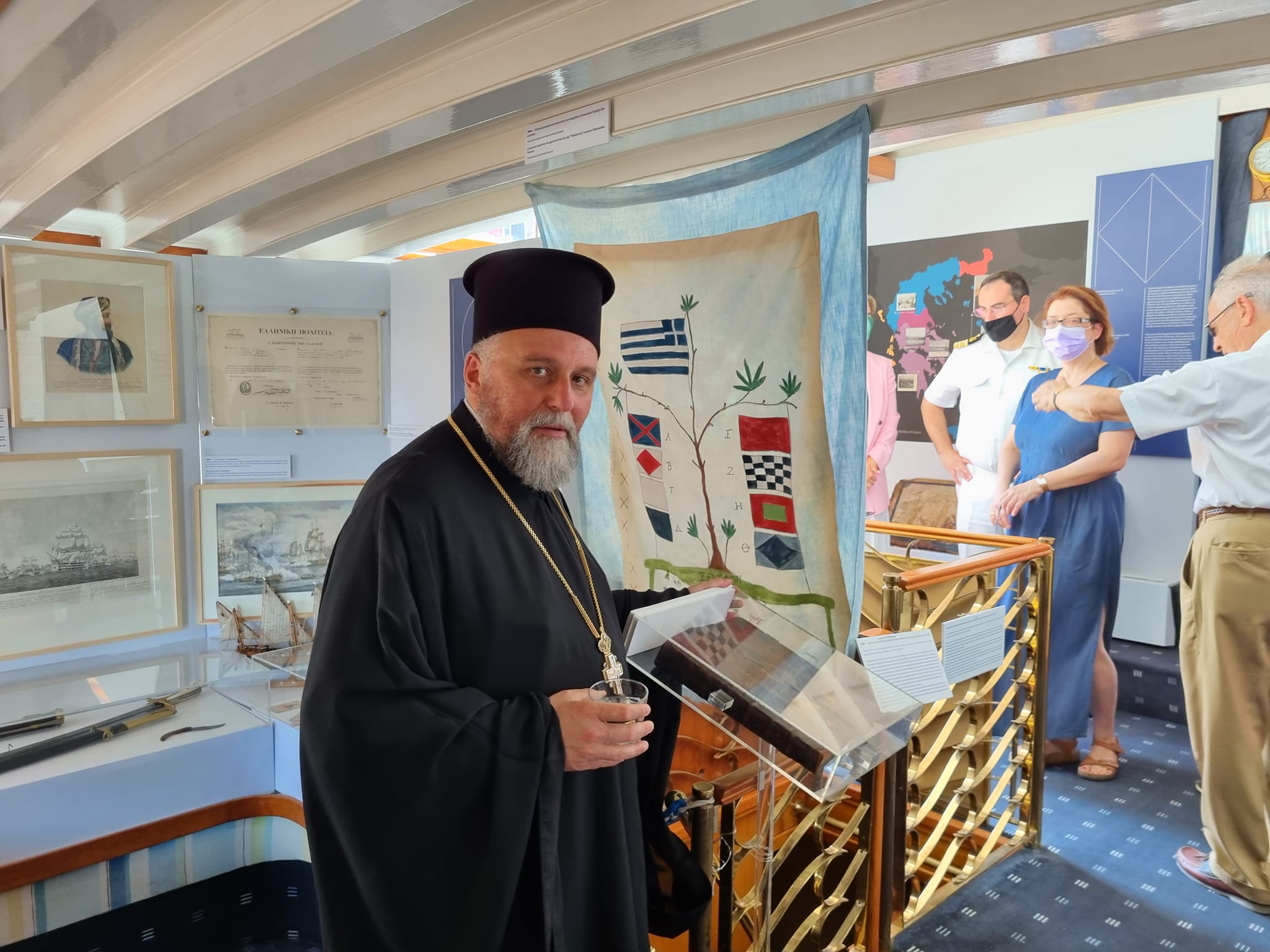 Στην υποδοχή, τον Σεβασμιώτατο Ποιμενάρχη μας κ. ΕΦΡΑΙΜ εκπροσώπησε ο Γενικός Αρχιερατικός Επίτροπος πρωτ. π. Ακίνδυνος Δαρδανός, ο οποίος μετέφερε τις πατρικές ευχές Του και ξεναγήθηκε στην εν λόγω πλωτή Έκθεση.