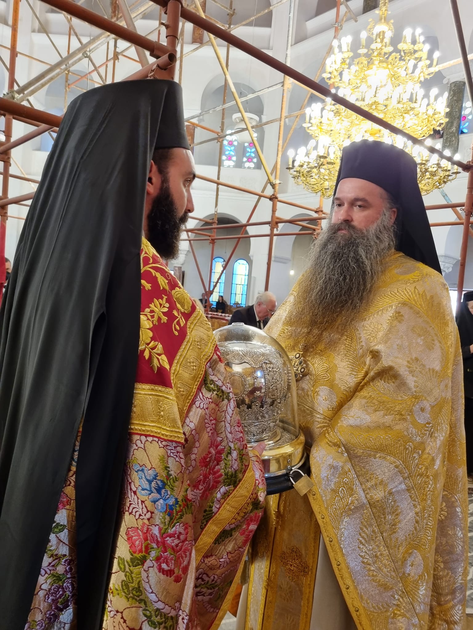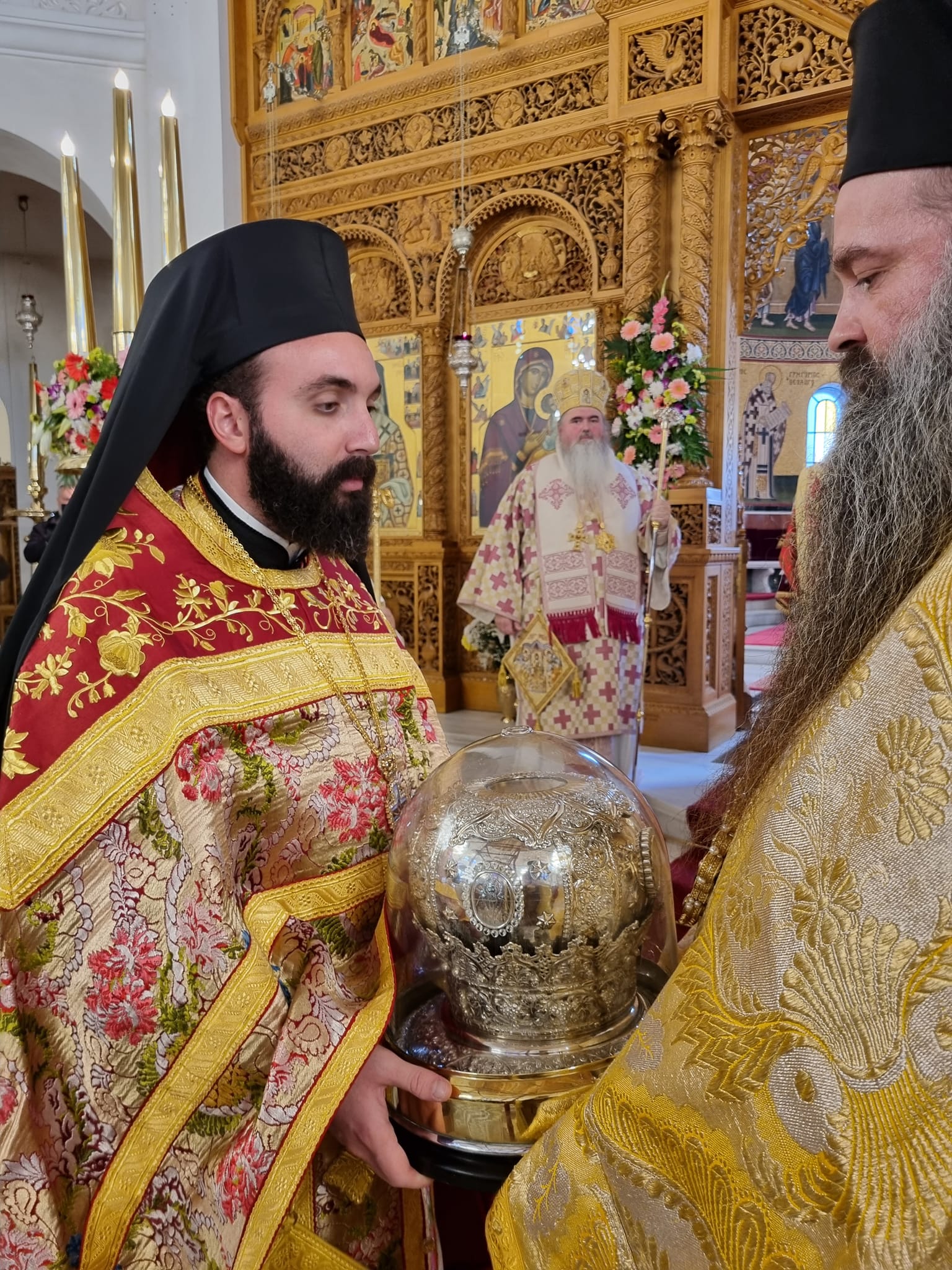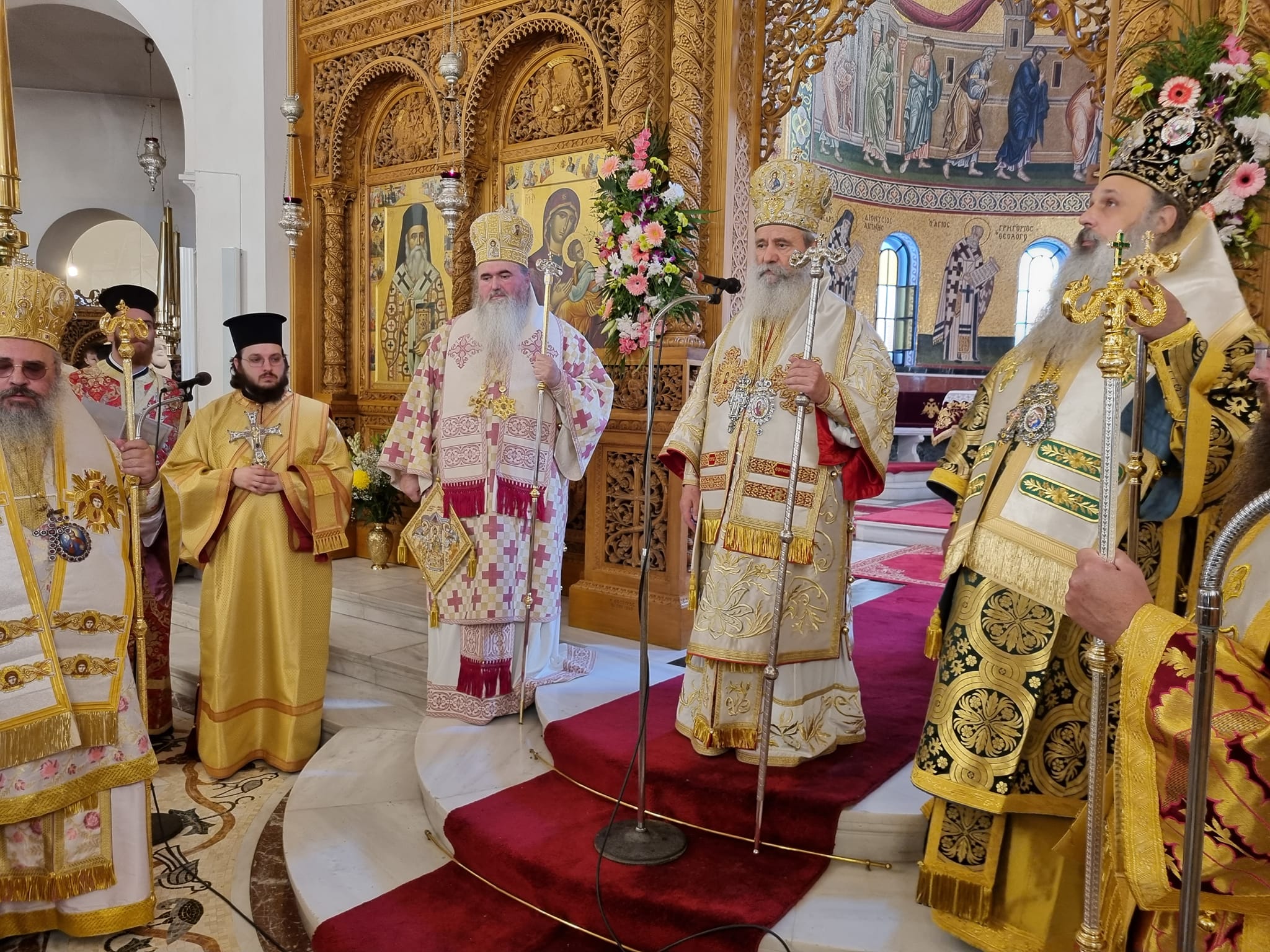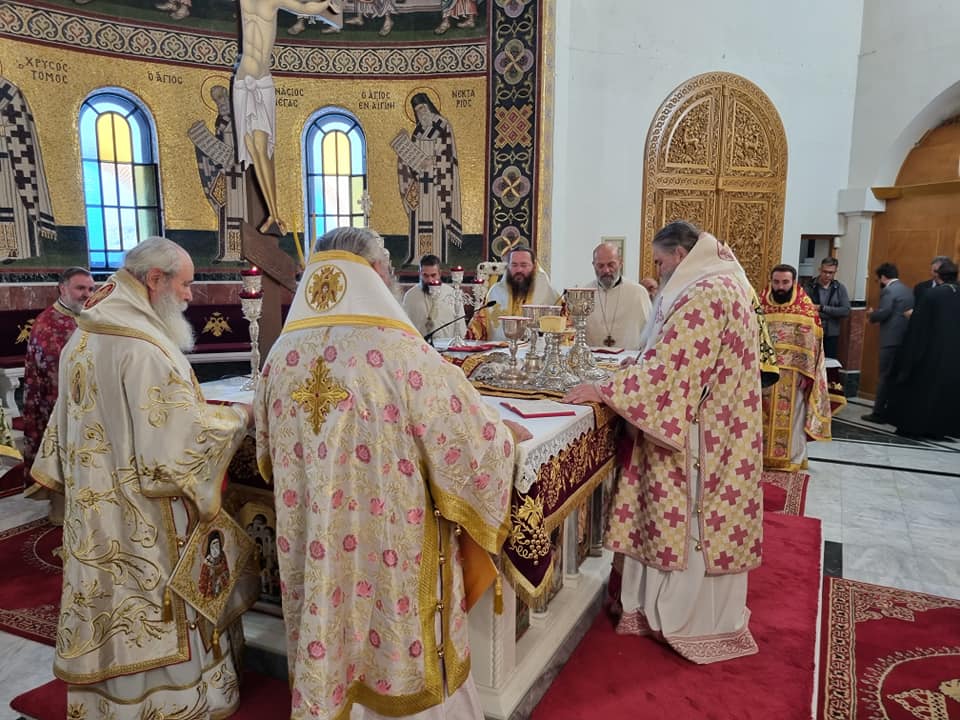 Συλλειτούργησαν οι Σεβασμιώτατοι Μητροπολίτες: Σταγών και Μετεώρων κ. ΘΕΟΚΛΗΤΟΣ, Λαγκαδά, Λητής και Ρεντίνης κ. ΠΛΑΤΩΝ, Πολυανής και Κιλκισίου κ. ΒΑΡΘΟΛΟΜΑΙΟΣ, και ο Σεβασμιώτατος Ποιμενάρχης μας κ.ΕΦΡΑΙΜ.