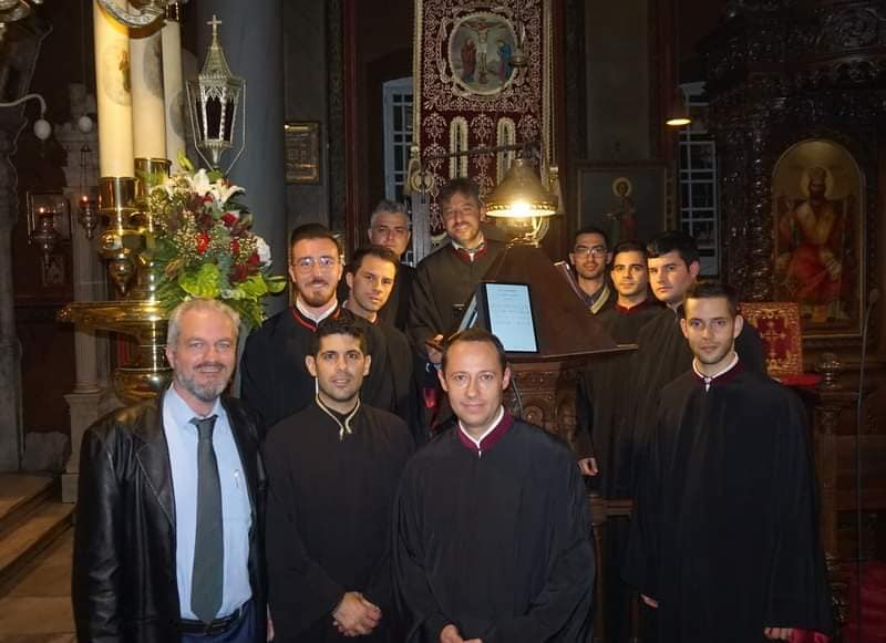 Έψαλλε πολυμελής χορός υπό την Διεύθυνση του Καθηγητή και υποψηφίου Διδάκτορος Μουσικολογίας κ. Γ.Δεμελή.