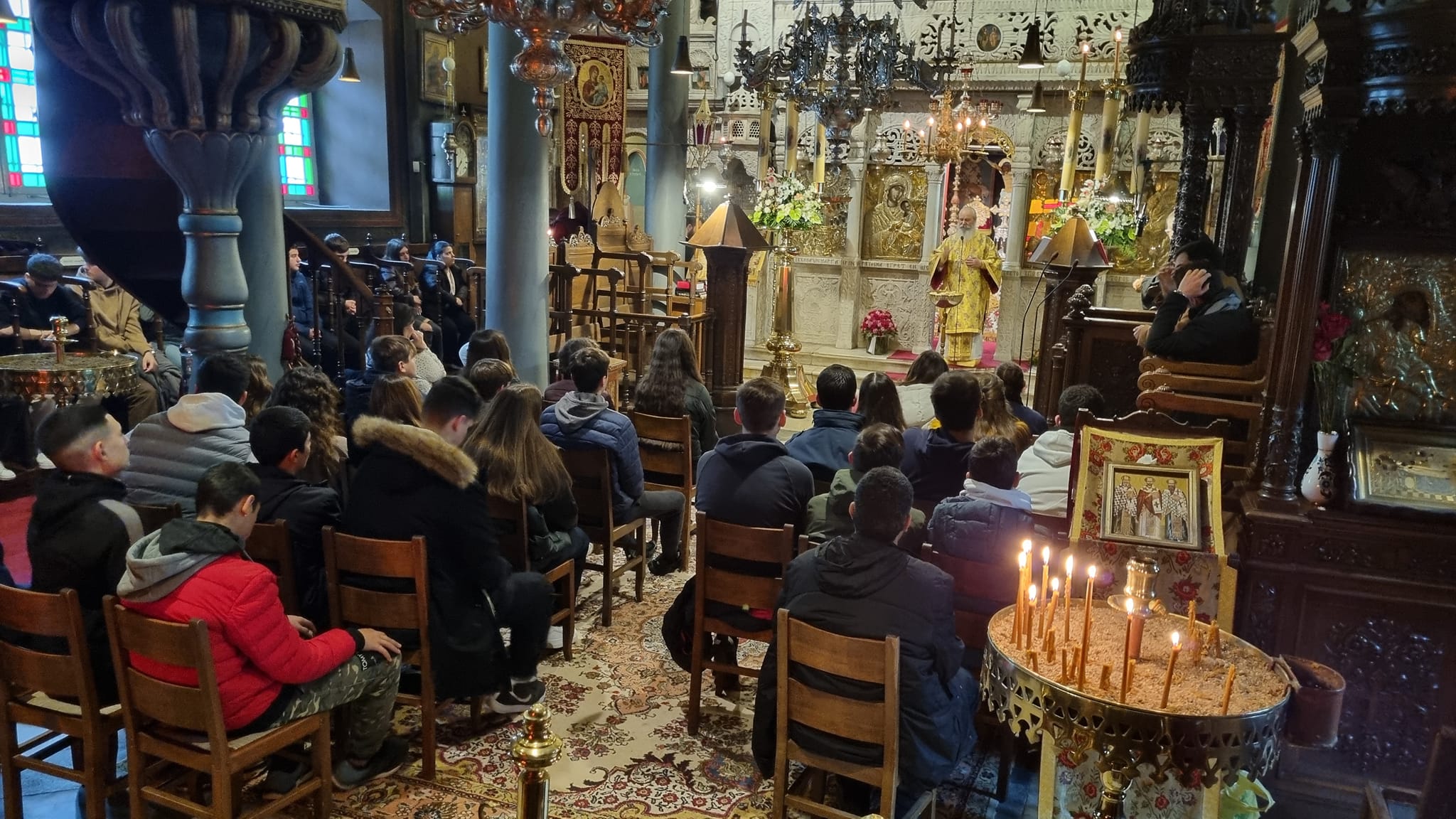 Ο Σεβασμιώτατος ομίλησε διδακτικά και με εύστοχα παραδείγματα στα παιδιά, ενώ τους προέτρεψε να εμπνέονται από την ζωή και το έργο των Μεγάλων Πατέρων της Εκκλησίας μας.