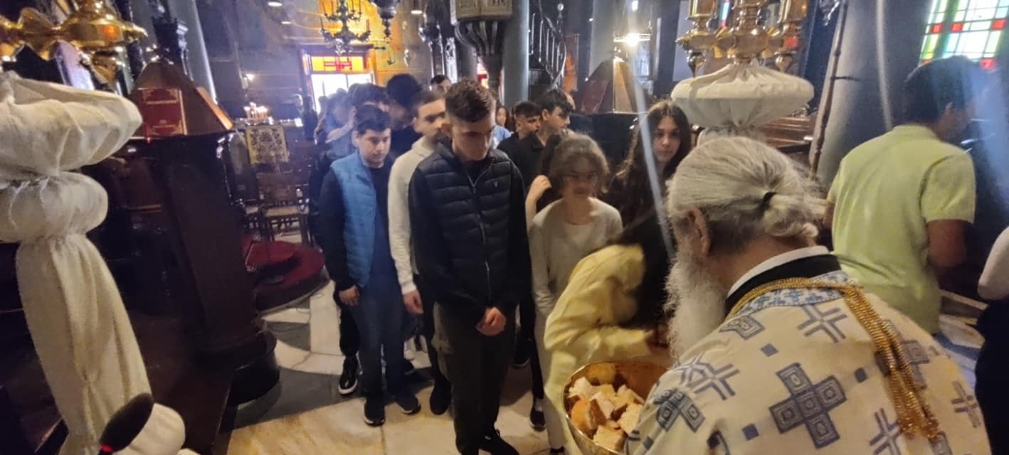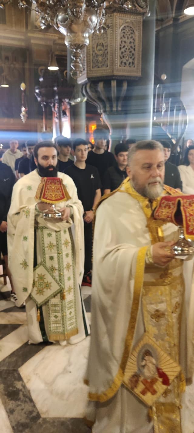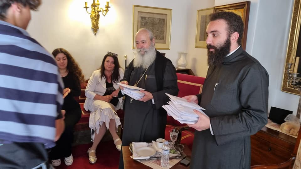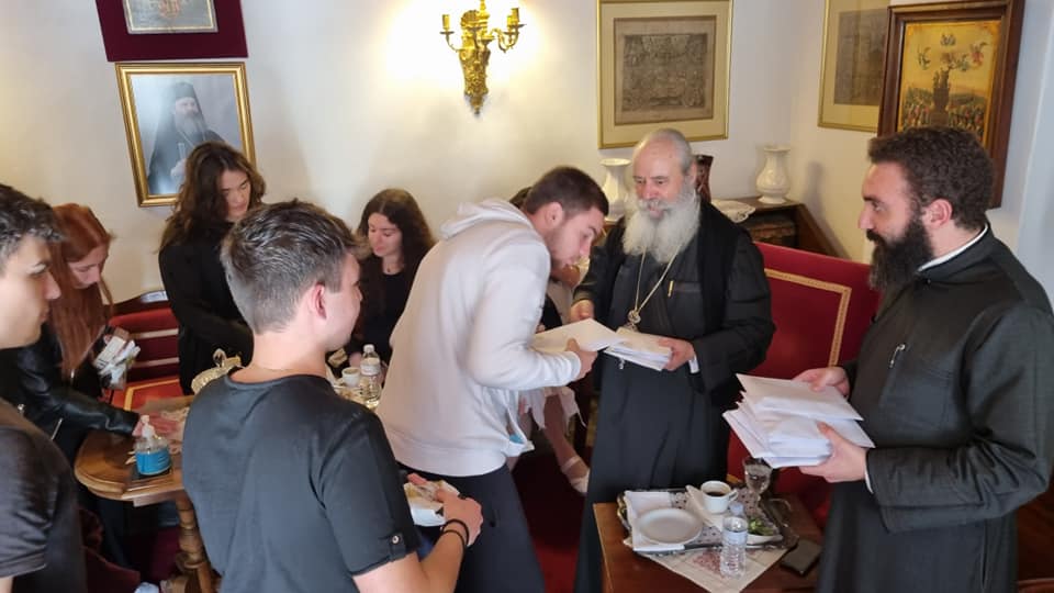Μετά το τέλος της Αρχιερατικής Θ.Λειτουργίας εδόθη κέρασμα σε όλα τα παιδιά και εν συνεχεία ο Σεβασμιώτατος δέχθηκε στο Αρχονταρίκι την Γ' Λυκείου και συζήτησε μαζί τους εκτενώς για διάφορα θέματα.
