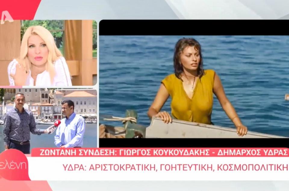 Ο Δήμαρχος Ύδρας Γιώργος Κουκουδάκης μίλησε με την Ελένη Μενεγάκη για το άνοιγμα της τουριστικής σεζόν, ενώ έγινε λόγος για την ταινία με τη Σοφία Λόρεν, "Το παιδί και το δελφίνι" (1957), που έκανε γνωστή την Ύδρα στα πέρατα του κόσμου.