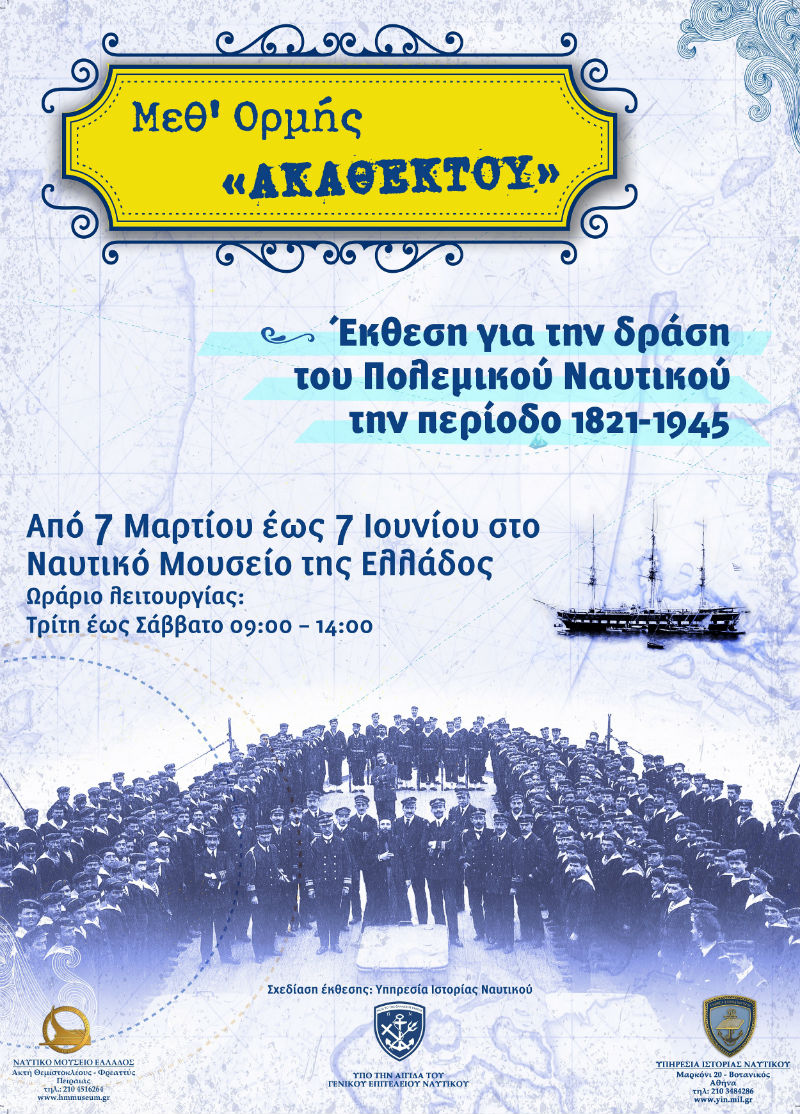 Το Ναυτικό Μουσείο της Ελλάδος παρουσιάσει από τις 7 Μαρτίου 2017 και για 3 περίπου μήνες την κινητή φωτογραφική έκθεση της Υπηρεσίας Ιστορίας Ναυτικού «Μεθ’ ορμής ακαθέκτου», η οποία αναφέρεται στη δράση του Πολεμικού Ναυτικού (1821-1945).