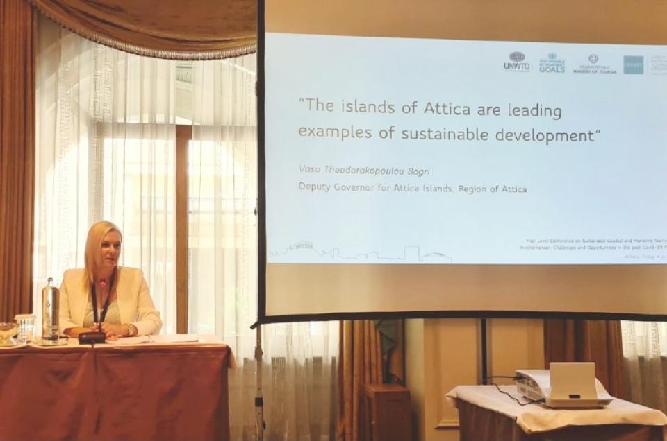 Στο Υψηλού Επιπέδου Συνέδριο για τον Παράκτιο και Θαλάσσιο Τουρισμό (Highlevel Conference on Coastal and Maritime Tourism) που συνδιοργάνωσαν στην Αθήνα την περασμένη Παρασκευή 4 Ιουνίου 2021 ο Παγκόσμιος Οργανισμός Τουρισμού και το Υπουργείο Τουρισμού, συμμετείχε, εκπροσωπώντας την Περιφέρεια Αττικής, η Αντιπεριφερειάρχης Νήσων Αττικής, Βάσω Θεοδωρακοπούλου – Μπόγρη.