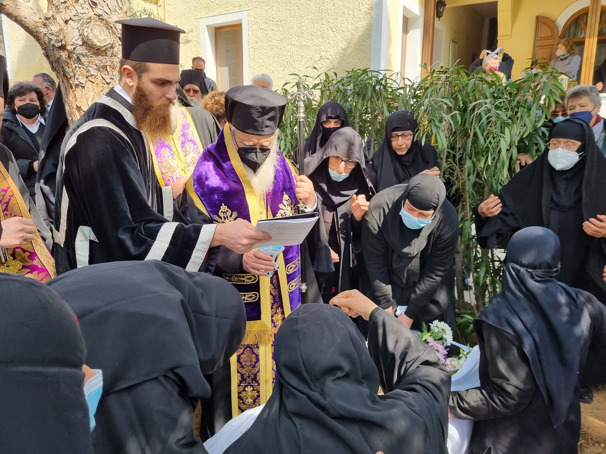 Εις τον περίφημο εξοδιαστικό λόγο του ο Σεβασμιώτατος Ποιμενάρχης μας ένδακρυς αναφέρθηκε στην χαρισματική προσωπικότητα της αοιδίμου Καθηγουμένης που με όλες τις δυνάμεις της και την πολυμελή αδελφότητα από το 1985 και εντεύθεν, ανακαίνησε την Ι. Μονή και την κατέστησε πνευματικό φάρο σε όλη την επικράτεια με το φημισμένο αγιογραφείο και με την εν γένει φιλοκαλία και την πνευματικότητα τους.