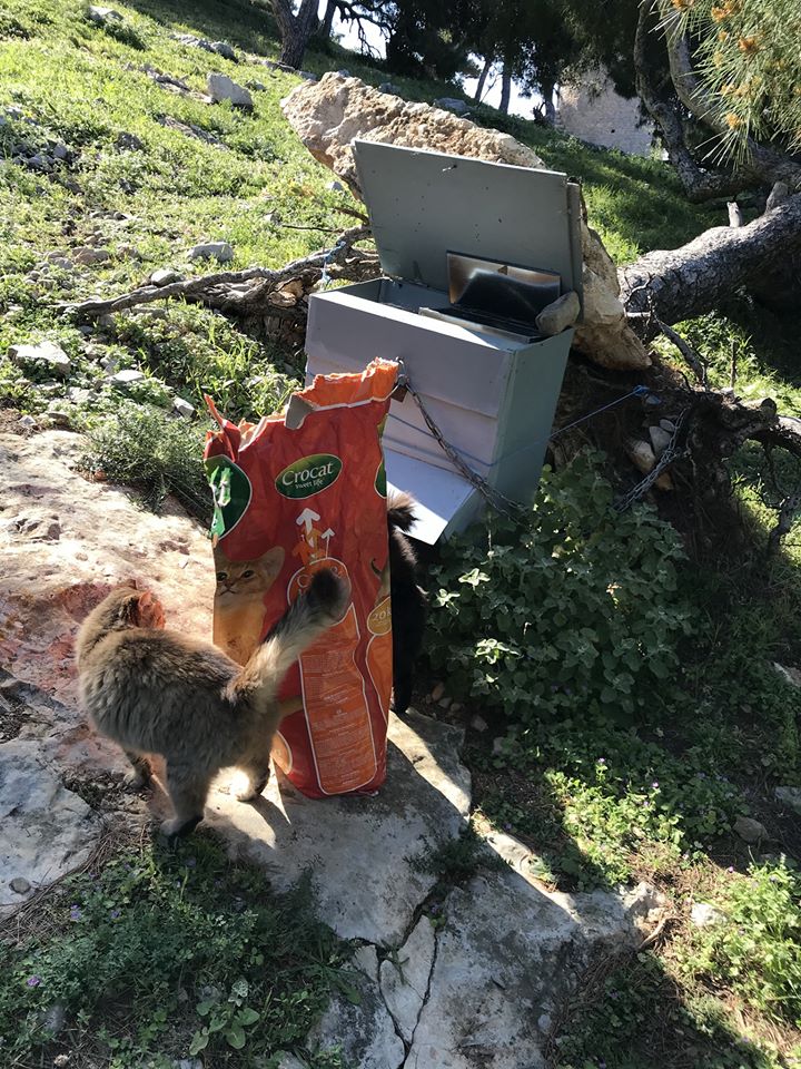 "Τις τελευταίες 3 μέρες φροντίσαμε και γεμίσαμε όλες τις ταΐστρες. Χθες γεμίσαμε στις περιοχές (Βλυχό, Αυλάκι και Δημοτική αγορά). Επίσης ταΐσαμε γάτες στο Καμίνι και τον Παπαγάλο. Στον Παπαγάλο οι γάτες ήταν πολύ πεινασμένες και διψασμένες!