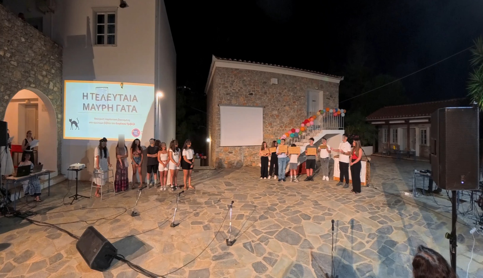 Στη συνέχεια, παρουσιάστηκαν επιλεγμένες δράσεις που αποτύπωσαν τη δουλειά και την πρόοδο των μαθητών/τριών κατά τη διάρκεια της χρονιάς. Ξεχωριστή θέση στο πρόγραμμα είχε η θεατρική παράσταση «Η τελευταία μαύρη γάτα» του Ευγένιου Τριβιζά, βασισμένη στο ομώνυμο μυθιστόρημα που διαβάστηκε στο πλαίσιο της φιλαναγνωσίας. Οι μαθητές/τριες, με ευαισθησία και θεατρική ζωντάνια, ανέδειξαν μηνύματα κατά του ρατσισμού και των προκαταλήψεων, στέλνοντας ένα δυνατό μήνυμα ανθρωπιάς και αποδοχής.