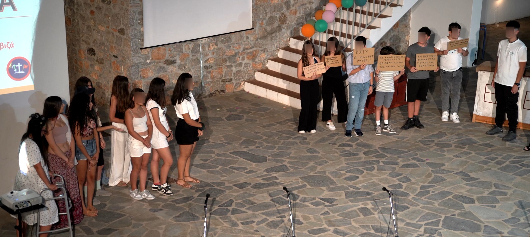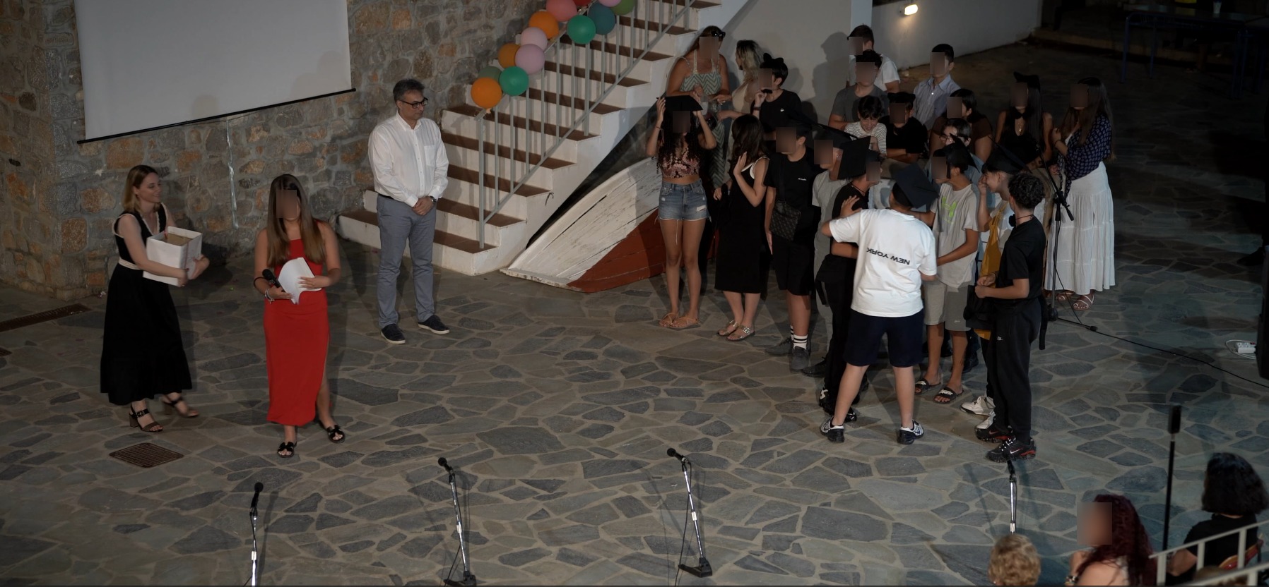 Στο φινάλε της παράστασης, μαθήτριες προσέφεραν στους παρευρισκόμενους μικρές κόκκινες καρδιές με τις λέξεις «αγάπη», «σεβασμός», «αλληλεγγύη», «αποδοχή», «ενσυναίσθηση» μετατρέποντας τη σκηνή σε μια γιορτή αξιών και μηνυμάτων που ξεπερνούν τα όρια του θεάτρου.