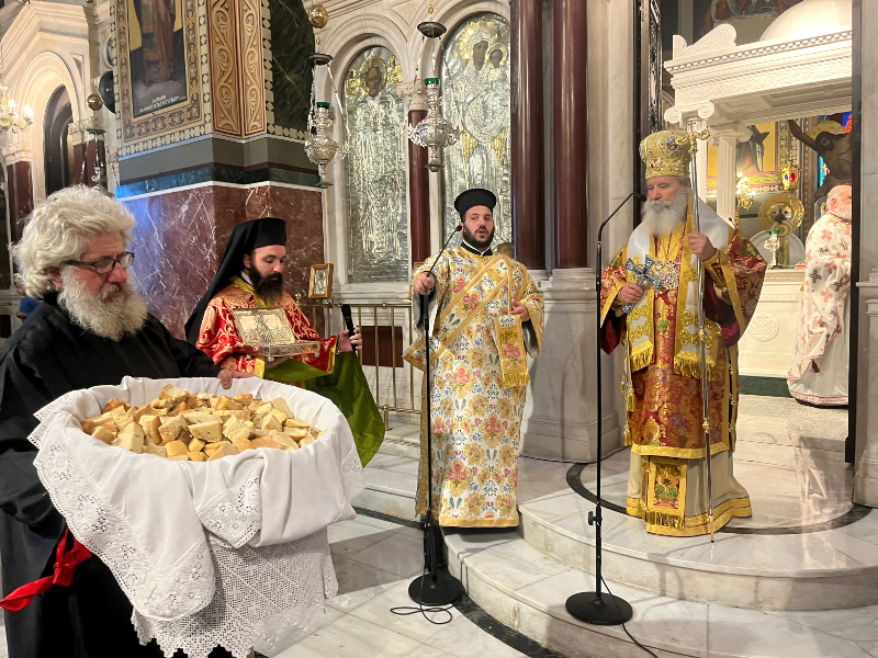Τελέστηκε αρχιερατική θεία λειτουργία μετά αρτοκλασίας, προεξάρχοντος του Σεβασμιότατου Μητροπολίτη μας κ.κ. Εφραίμ και με τη συμμετοχή του Πρωτοσύγκελλου της Μητρόπολης Ύδρας Αρχιμανδρίτη Πανοσιολογιότατου Νεκτάριου Δαρδανού, καθώς και του ιερού κλήρου του ναού.