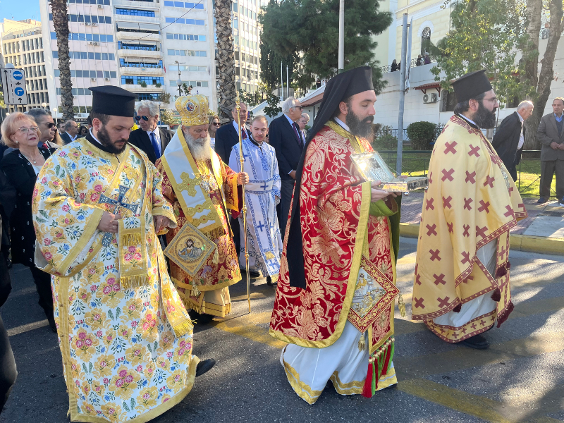 Με κάθε επισημότητα και όλες τις τιμές γιορτάστηκε σήμερα Κυριακή 16 Νοεμβρίου η Μνήμη του Νεομάρτυρα Αγίου Κωνσταντίνου του Υδραίου στον Ιερό Ναό Αγίου Νικολάου στον Πειραιά.