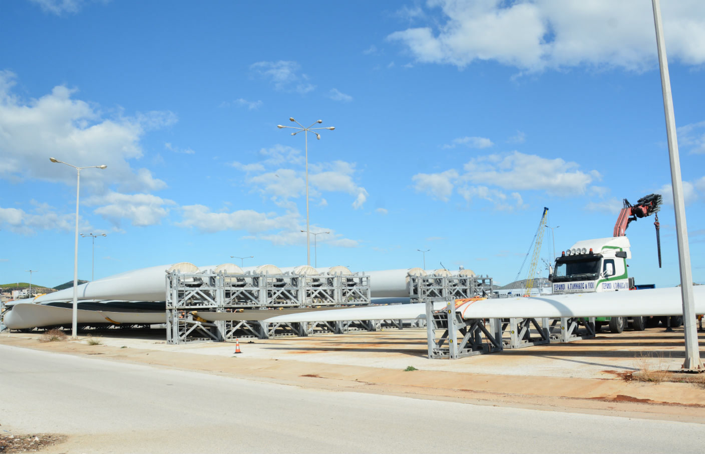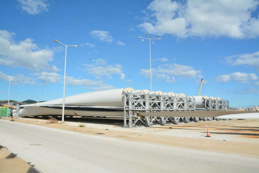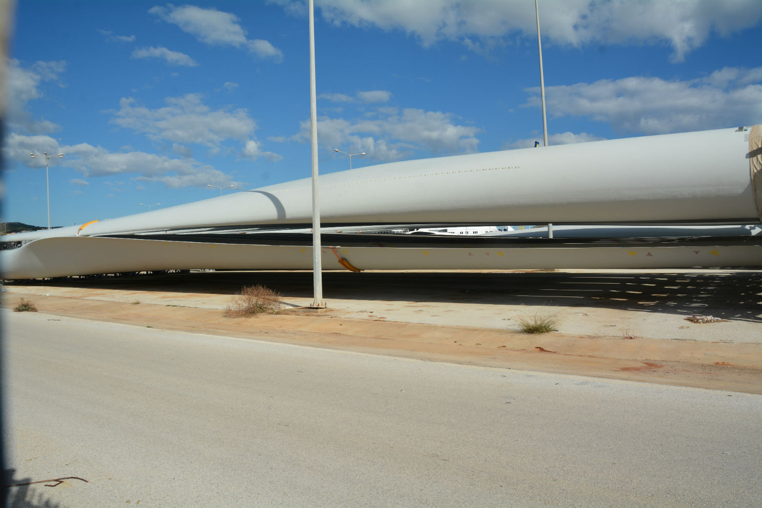 Όλος ο μηχανισμός μαζί με τις έλικες, όπως βλέπετε και στις φωτογραφίες που εξασφαλίσαμε αποκλειστικά, βρίσκεται στο λιμάνι του Λαυρίου και οι ανεμογεννήτριες περιμένουν τη μεταφορά τους για το Σαν Τζόρτζι, όπου θα συναρμολογηθούν και θα εγκατασταθούν. Εδώ και αρκετό διάστημα, όπως έχουμε αναφέρει και στην έντυπη έκδοσή μας, ο εκεί χώρος έχει μετατραπεί σε ένα μεγάλο εργοτάξιο, προκειμένου να τοποθετηθούν 23 ανεμογεννήτριες και υποσταθμός ανύψωσης της τάσης, με ταυτόχρονη υποθαλάσσια σύνδεση με το εργοστάσιο της ΔΕΗ στο Λαύριο.