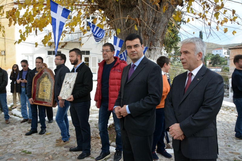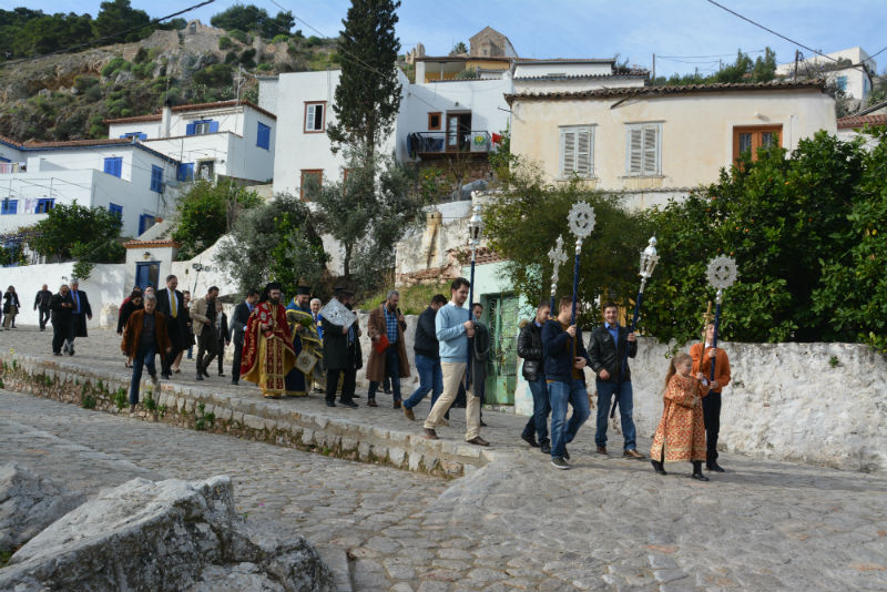 Μόλις ολοκληρώθηκε ο αγιασμός, η πομπή κατευθύνθηκε στον λιμενοβραχίονα για την καθιερωμένη μεγαλοπρεπή κατάδυση του τιμίου σταυρού.