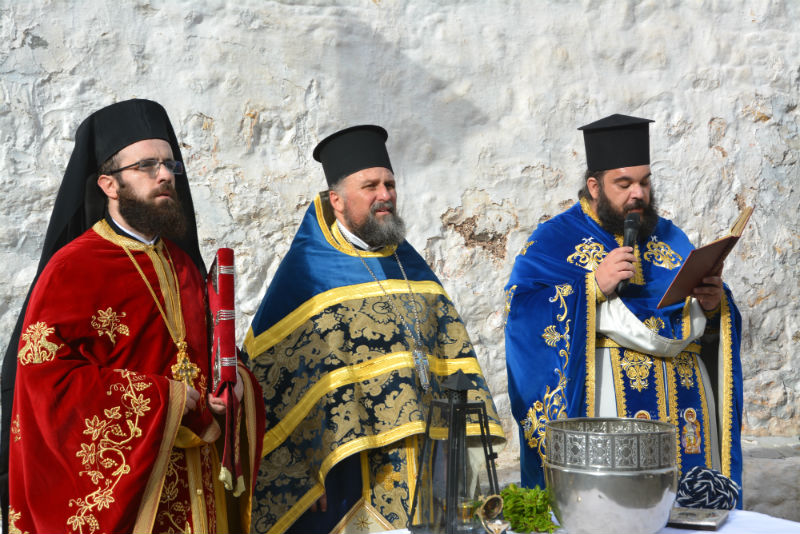 Μετά τη θεία λειτουργία στον Ιερό Καθεδρικό Ναό αρκετοί πιστοί ακολούθησαν τη λιτανευτική πομπή προς τα Καλά Πηγάδια για τον αγιασμό των υδάτων των δυο μεγάλων πηγαδιών σύμφωνα με την παράδοση και με τη συμμετοχή του ιερού κλήρου και παρόντων των τοπικών αρχών.