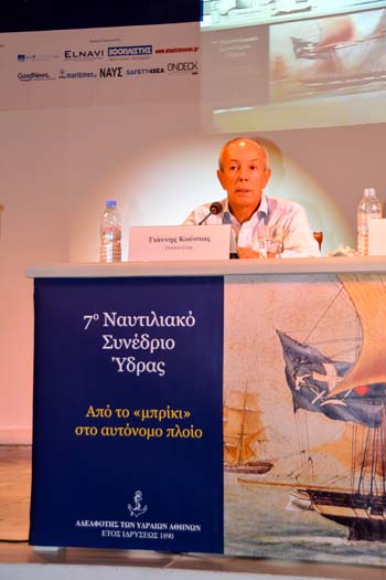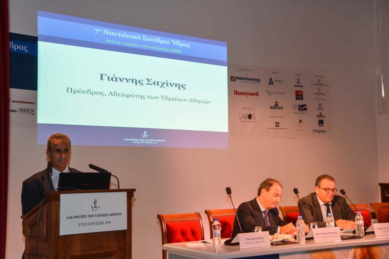 Ο Προέδρος της Αδελφότητος των Υδραίων Αθηνών (www.aya.com.gr), κ. Γιάννης Σαχίνης, εγκαινιάζοντας τις εργασίες του συνεδρίου, ο Πρόεδρος της Αδελφότητος των Υδραίων Αθηνών, Γιάννης Σαχίνης, αναφέρθηκε στους σκοπούς της Αδελφότητος, οι οποίοι παραμένουν ίδιοι από την ίδρυσή της το 1890 μέχρι σήμερα και είναι: Παρεμβάσεις για εθνικά θέματα, διατήρηση της μνήμης της προσφοράς της Ύδρας στο έθνος και η προβολή αυτής, διατήρηση επαφής με φιλέλληνες, φιλανθρωπική δράση, δωρεές για κοινωφελείς σκοπούς, προστασία της περιβαλλοντικής και αρχιτεκτονικής κληρονομιάς, προσέλκυση νέων στο ναυτικό επάγγελμα, με ενίσχυση των σπουδών και της μετέπειτα πορείας τους.