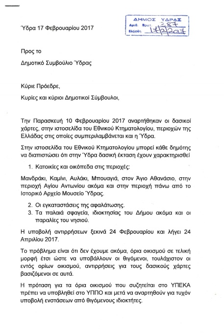 Το εν λόγω θέμα θα απασχολήσει και το Δημοτικό Συμβούλιο Ύδρας κατά την τακτική συνεδρίαση του τη Δευτέρα 20/02/2017.