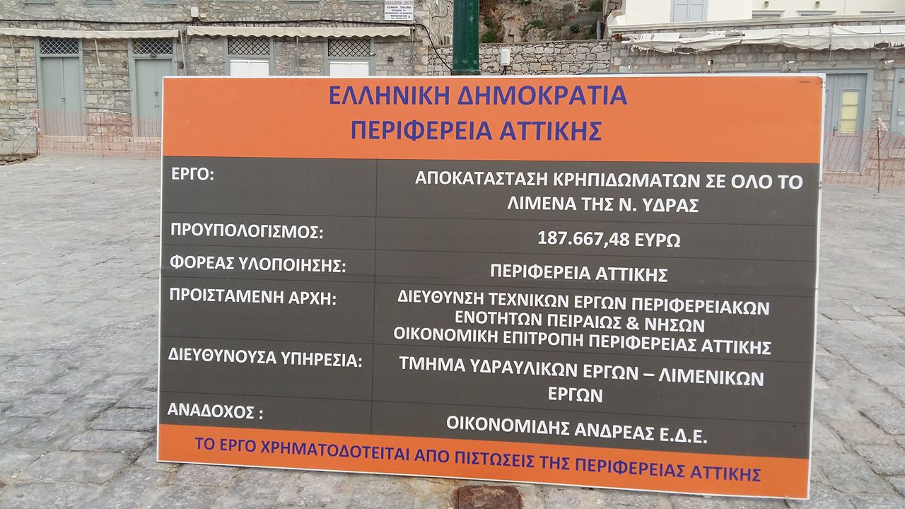 Ξεκίνησε το επισκευαστικό έργο αποκατάστασης κρηπιδώματος στον κεντρικό προβλήτα του λιμανιού της Ύδρας, ποσού 187.667,48 ευρώ. (συνολικού προϋπολογισμού 276.000 ευρώ).