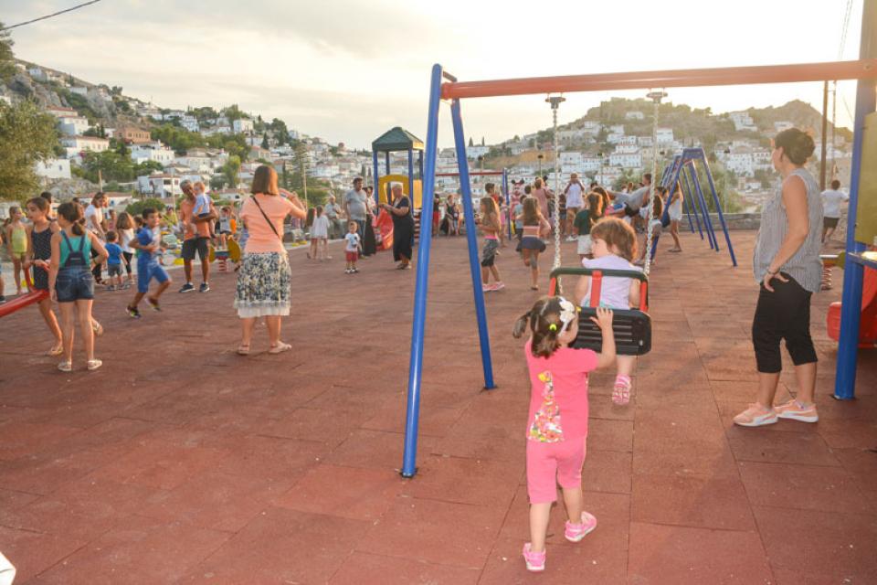 Πρόκειται για την πρώτη πιστοποιημένη παιδική χαρά που υλοποίησε ο Δήμος Ύδρας, που έχει ειδικές κατασκευές, κατάλληλο μαλακό τάπητα και πληροί όλες τις σύγχρονες προϋποθέσεις σύμφωνα με το ευρωπαϊκό πρότυπο ασφαλείας.