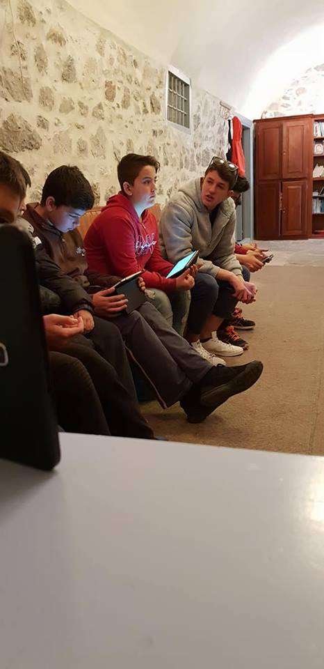 Μαζί τους ήταν και ο Αρχιμανδρίτης της Ι. Μητρόπολης Ύδρας, π. Νεκτάριος Δαρδανός, ο οποίος μίλησε στα αγόρια του Γυμνασίου και Λυκείου του νησιού για την εορτή του Πάσχα.