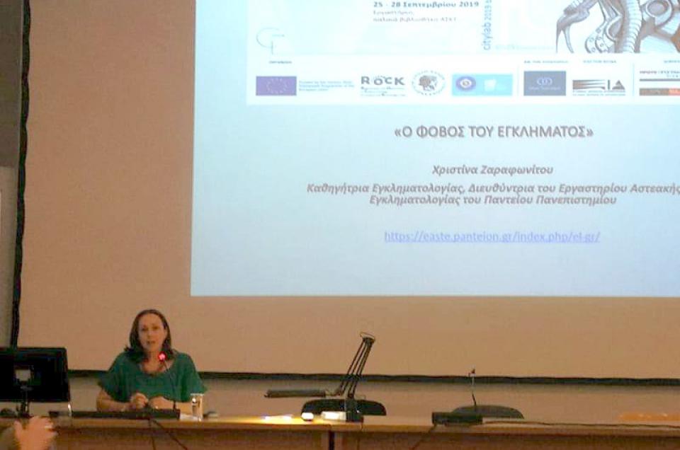 Στο Citylab 2019_b με τίτλο «Φόβος – Αρχιτεκτονική – Τέχνη» της Ανώτατης Σχολής Καλών Τεχνών και στο θεματικό Αφιέρωμα που πραγματοποιήθηκε στις 26 Σεπτεμβρίου 2019 στο ΑΜΦΙΘΕΑΤΡΟ DE CHIRICO, συμμετείχε η Καθηγήτρια Εγκληματολογίας του Παντείου Πανεπιστημίου, Χριστίνα Ζαραφωνίτου.
