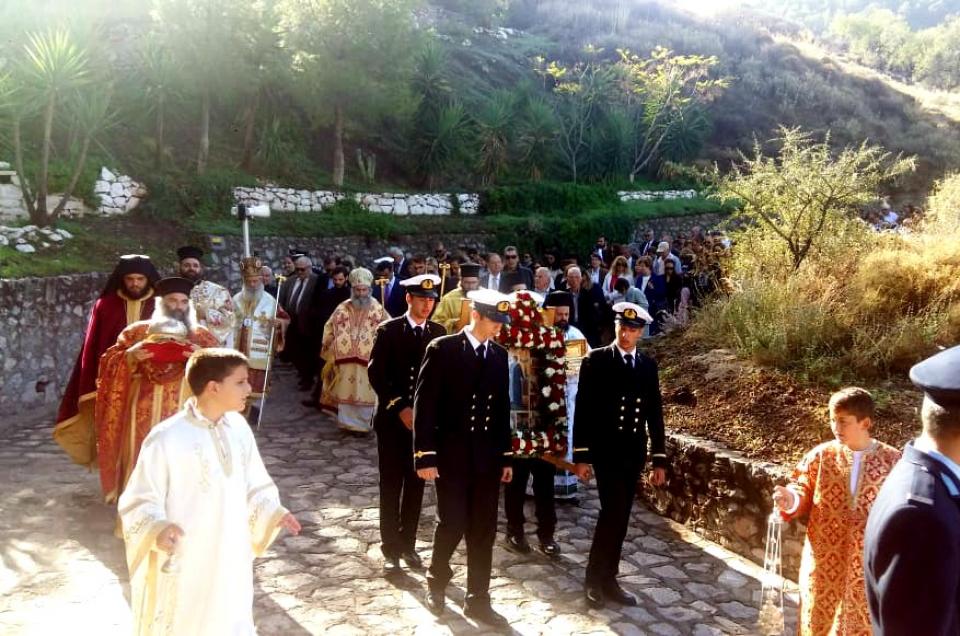 Να θυμίσουμε ότι την παραμονή της γιορτής τελέστηκε ο μικρός εσπερινός στον Ι. Ναό του Αγίου μας και στη συνέχεια ο μέγας πανηγυρικός Εσπερινός στον Καθεδρικό Ναό της Παναγίας.