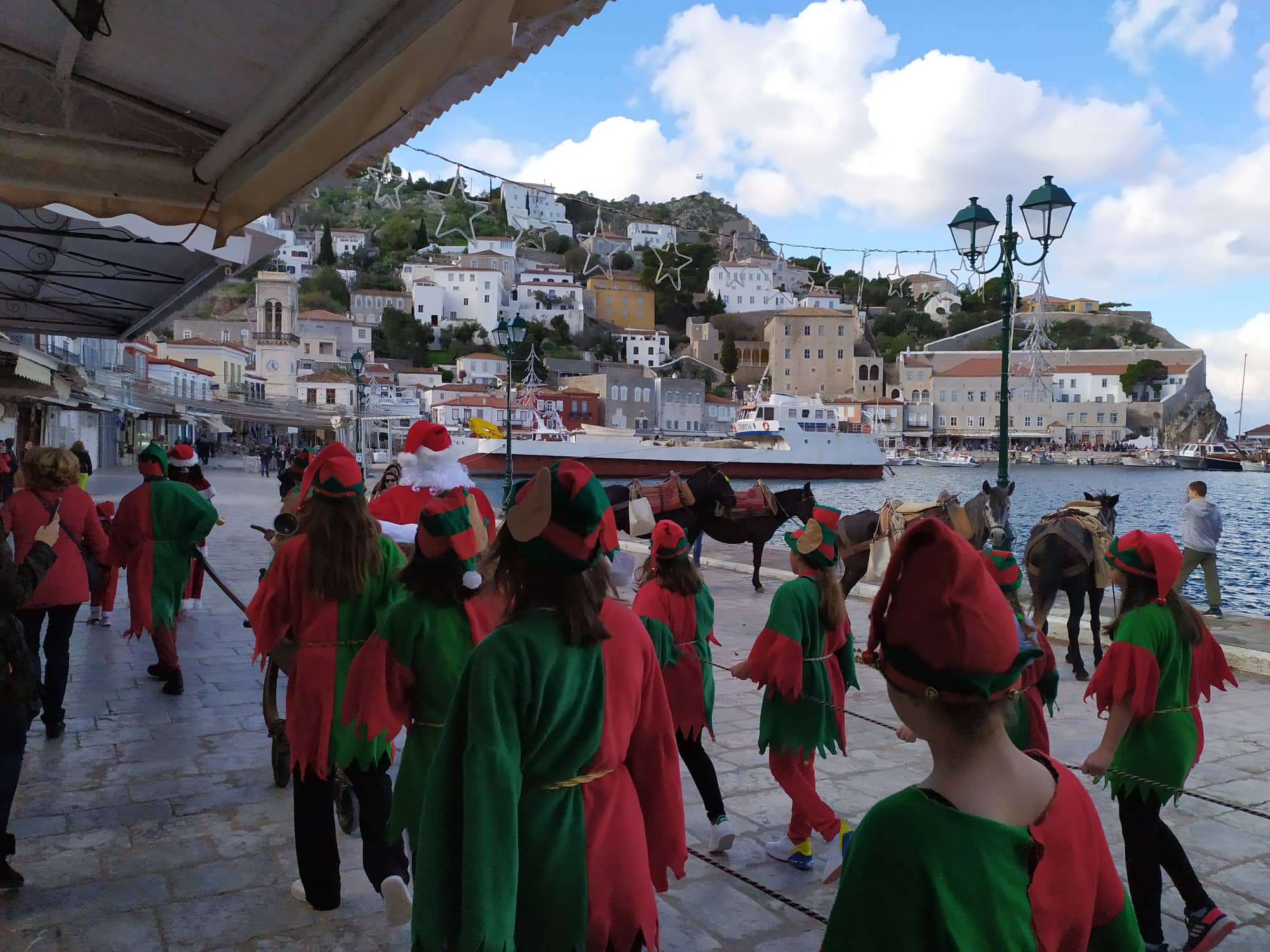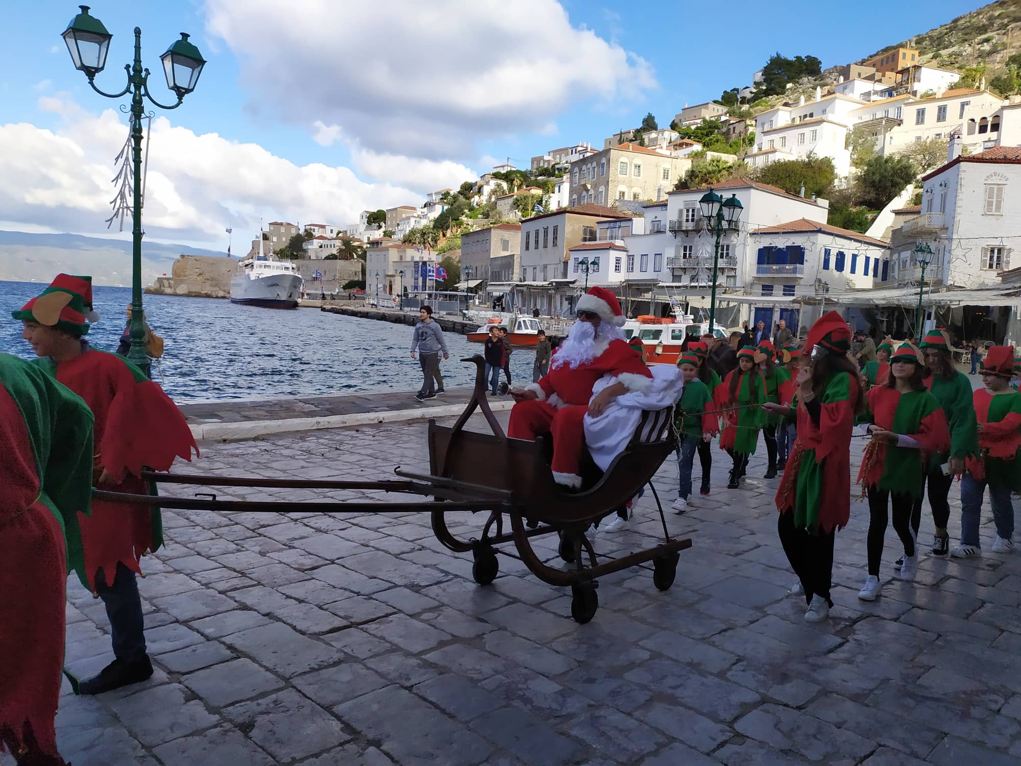 Ο Άγιος Βασίλης πάνω στο εντυπωσιακό του έλκηθρο έκανε τον γύρο του λιμανιού μέχρι να φτάσει στον χώρο της Υδραγωγής, όπου μαζί με τα ξωτικά του και τα καμπανάκια τους, χάρισαν αμέτρητα χαμόγελα στα παιδιά και ζεστά χειροκροτήματα!