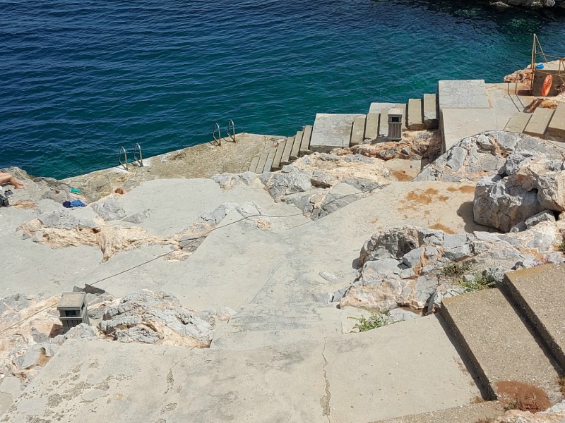 Πέντε καινούριες μεταλλικές σκάλες τοποθετήθηκαν στην πλαζ της Σπηλιάς για να διευκολύνουν την πρόσβαση των κολυμβητών στην θάλασσα.