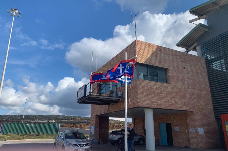 Δύο ηρωικές σημαίες της Ύδρας υψώθηκαν στο κεντρικό λιμεναρχείο Λαυρίου για τον εορτασμό της επετείου της 25ης Μαρτίου και τα 200 χρόνια από την Επανάσταση του 1821.