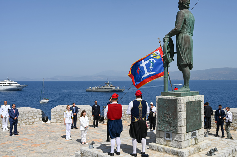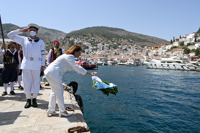 «Σήμερα, 200 χρόνια από το ξέσπασμα της Επανάστασης, η Ύδρα διατηρεί ακμαία αυτή την πατριωτική παράδοση και μεταβιβάζει ακέραιο τον πλούτο του παρελθόντος στο μέλλον», τόνισε η Πρόεδρος της Δημοκρατίας, Κατερίνα Σακελλαροπούλου κατά την επίσκεψή της στο νησί για τις επετειακές εκδηλώσεις «Μιαούλεια 2021».