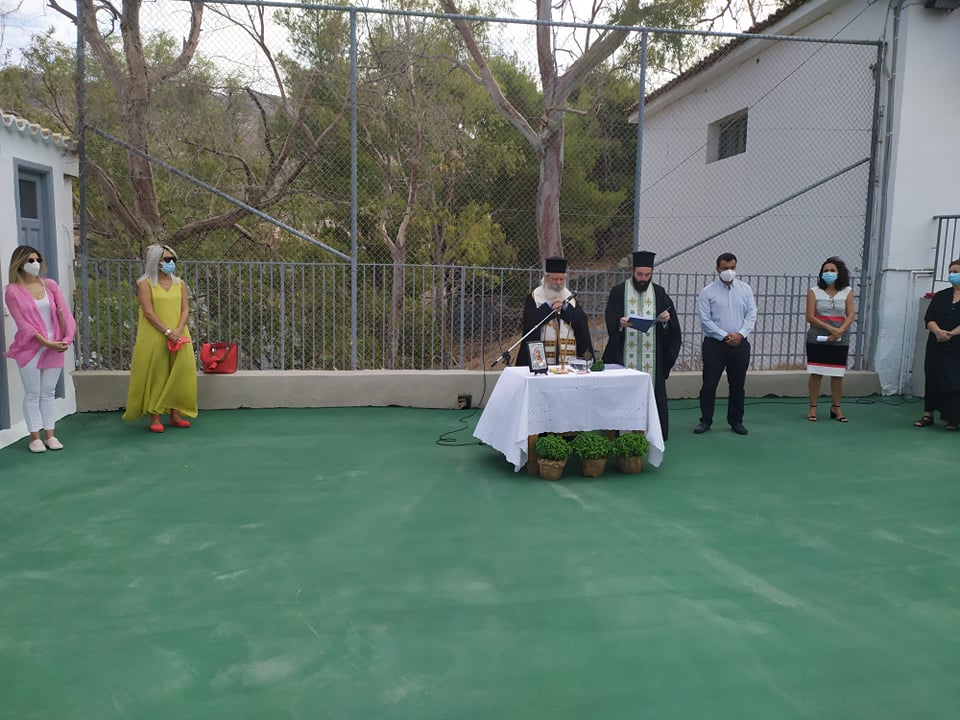 Στο Α' Δημοτικό που άνοιξε ανακαινισμένο τις πύλες του, ο Αγιασμός τελέστηκε από τον Σεβασμιότατο Μητροπολίτη Ύδρας κ. ΕΦΡΑΙΜ και τον Πρωτοσύγκελλο της Μητρόπολης Αρχιμ. Νεκτάριο Δαρδανό.