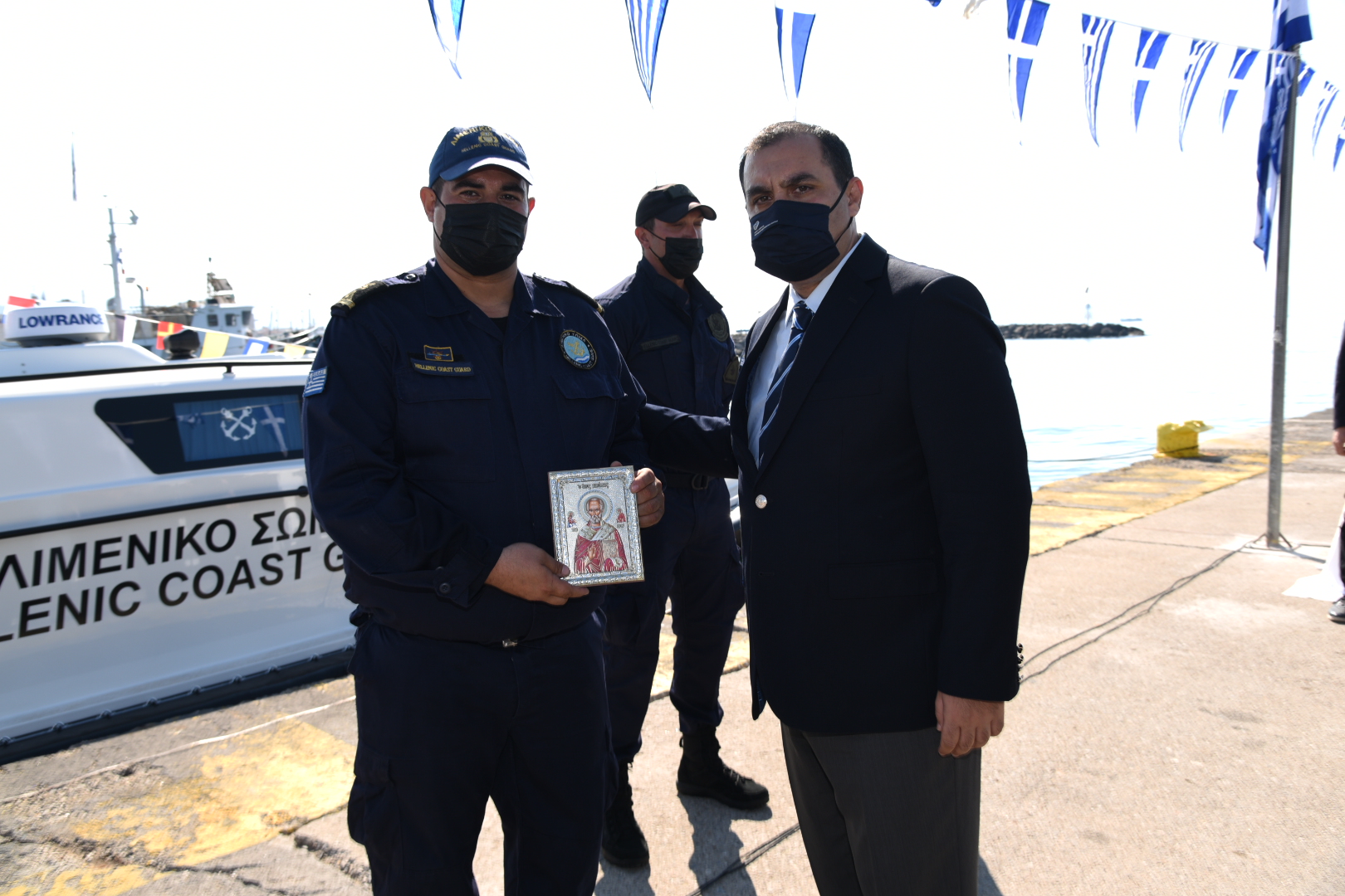 Και θέλω να ευχαριστήσω σε αυτό το σημείο τα στελέχη του Λιμενικού Σώματος αλλά και το Εθνικό Κέντρο Άμεσης Βοήθειας, για τις προδιαγραφές που έβαλαν, για να αποκτήσουμε αυτά τα περιπολικά σκάφη, αλλά και για τα όσα πράττουν από κοινού ώστε να σώζουν ζωές όλα αυτά τα χρόνια με τις διακομιδές ασθενών.