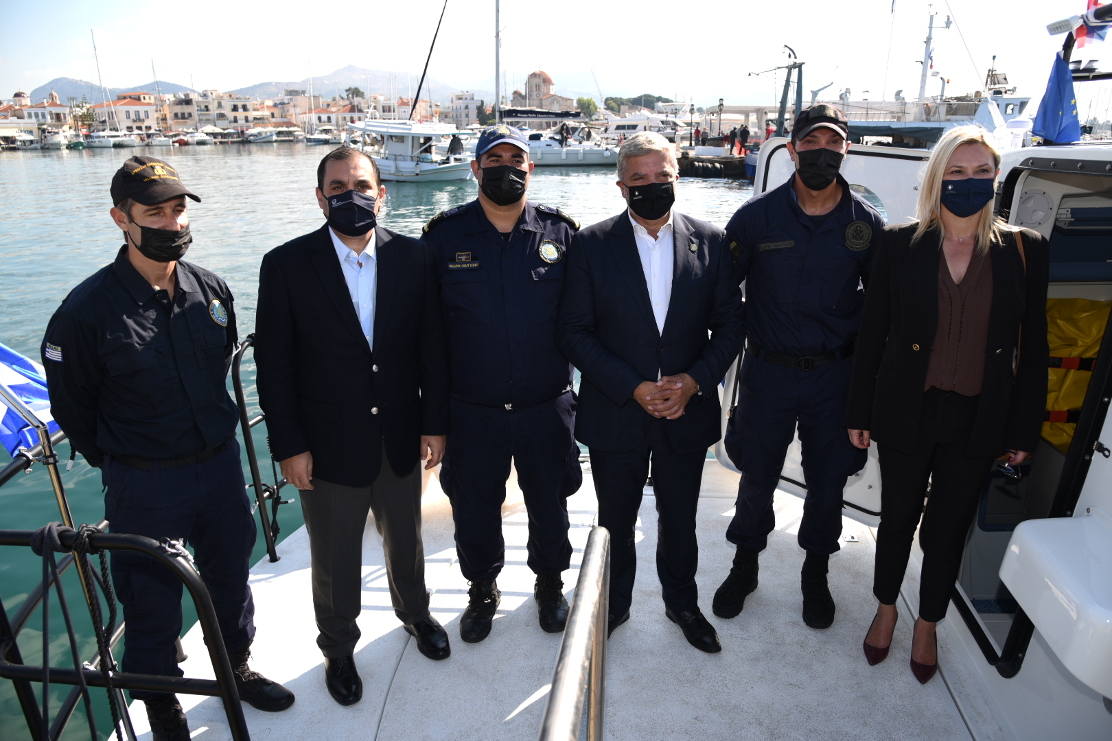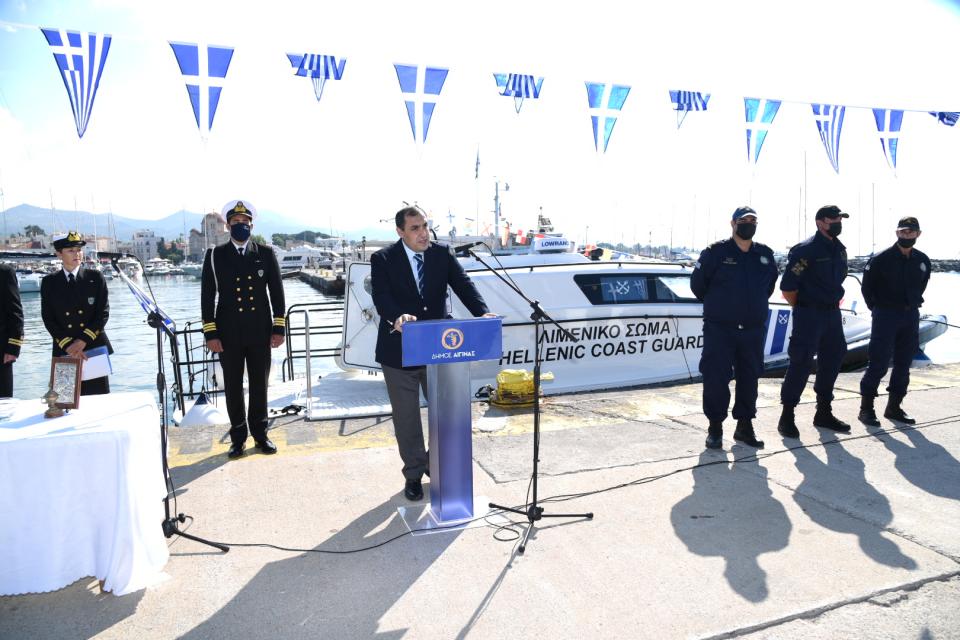 Ο Υφυπουργός Ναυτιλίας και Νησιωτικής Πολιτικής κ. Κώστας Κατσαφάδος πραγματοποίησε σήμερα στην είσοδο του λιμανιού της Αίγινας την τελετή ένταξης του σκάφους με υγειονομικό εξοπλισμό (ΛΣ 1068) στο Λιμενικό Σώμα - Ελληνική Ακτοφυλακή.