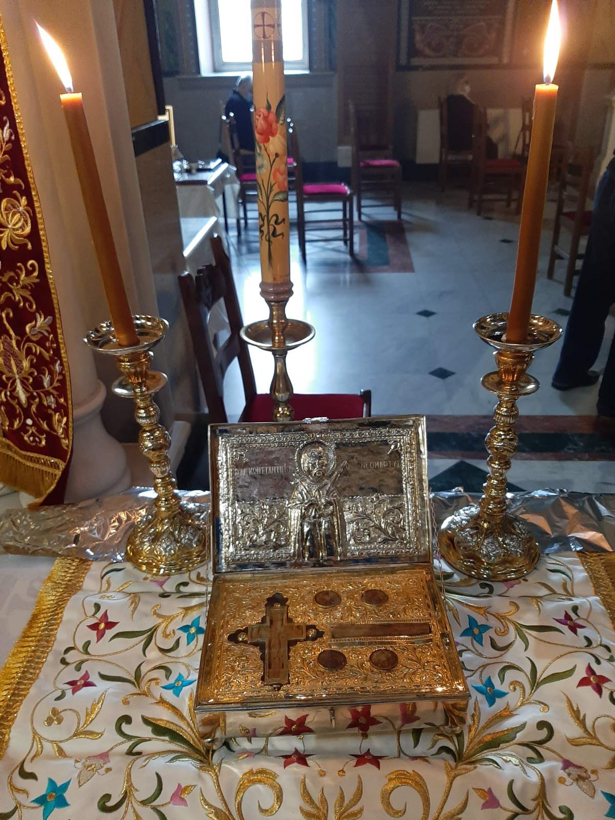 Στον Ιερό Ναό του Αγίου Νικολάου υπάρχει τεμάχιο του Ιερού λειψάνου του Αγίου Κωνσταντίνου.