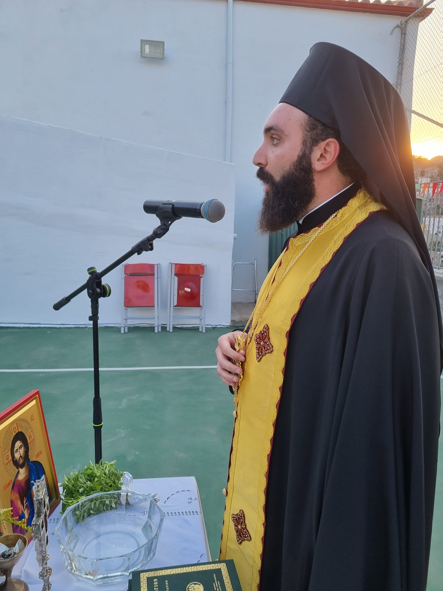 Τον Σεβασμιώτατο Ποιμενάρχη μας κ. ΕΦΡΑΙΜ εκπροσώπησε ο Πανοσ. Πρωτοσύγκελλος Αρχιμ. π. Νεκτάριος Δαρδανός, όστις ετέλεσε τον αγιασμό και ομίλησε, με την συμμετοχή και του Γενικού Αρχιερατικού Επιτρόπου Πρωτ. π. Ακινδύνου Δαρδανού.