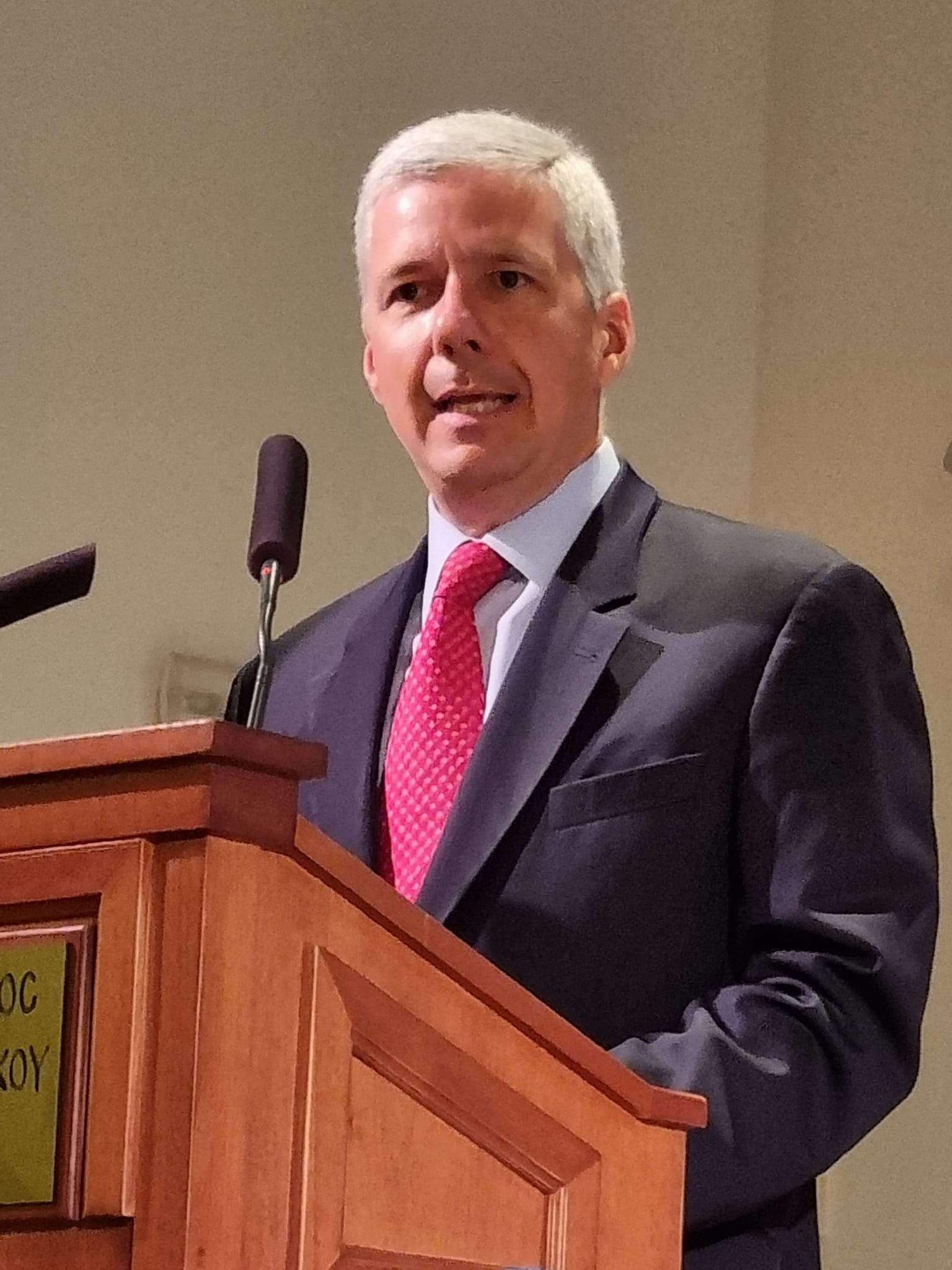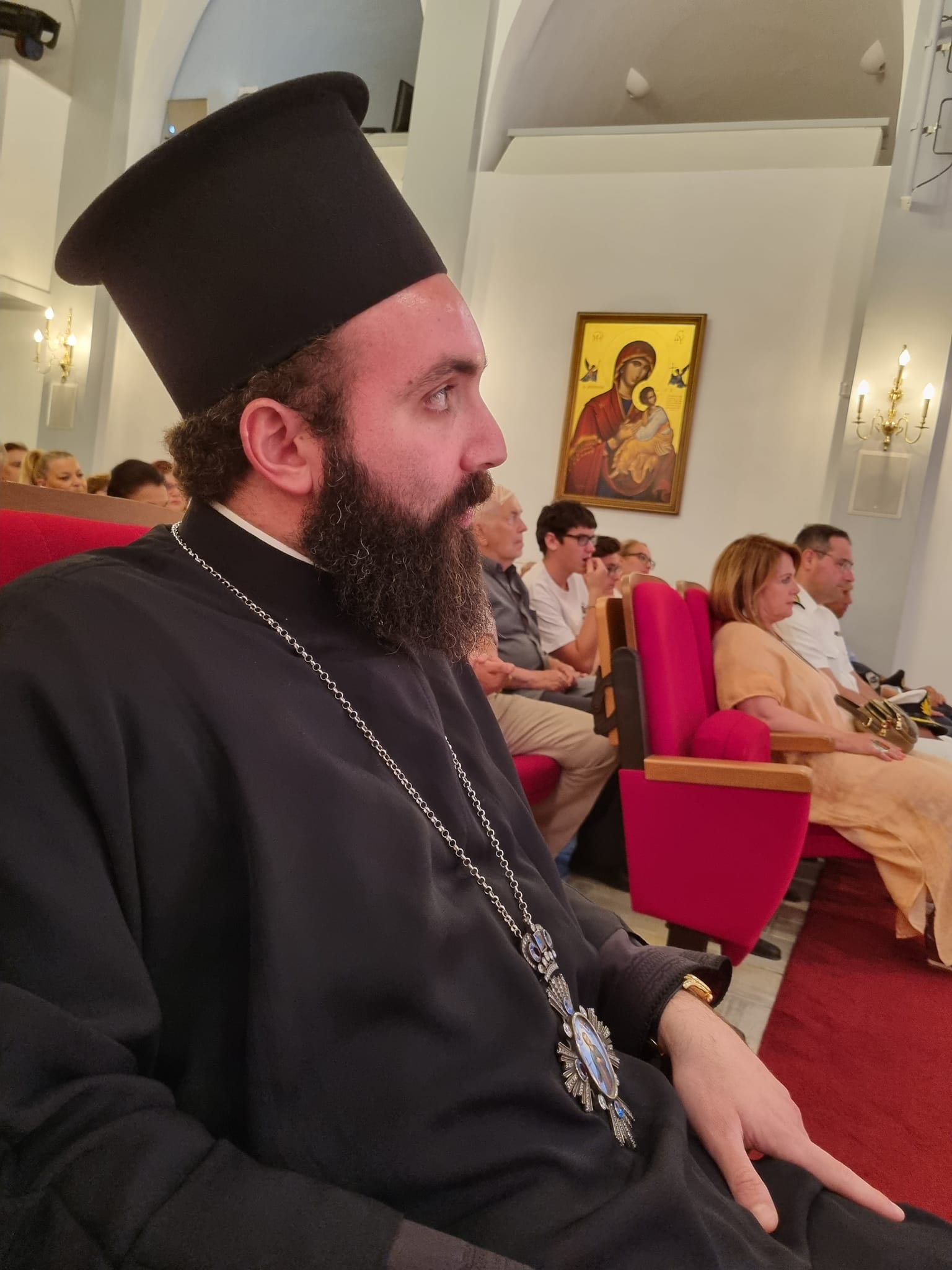 Τον Σεβασμιώτατο Ποιμενάρχη μας κ. ΕΦΡΑΙΜ εκπροσώπησε ο Πανοσ. Πρωτοσύγκελλος Αρχιμ. π.Νεκτάριος Δαρδανός όστις και χαιρέτησε την εκδήλωση και μετέφερε τις πατρικές και συγχαρητήρια ευχές του Σεβασμιωτάτου.