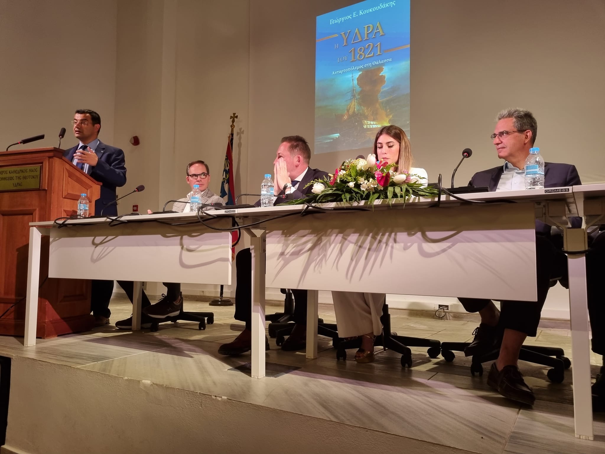 Πραγματοποιήθηκε με μεγάλη επιτυχία στην Συνεδριακή αίθουσα του Ιερού Καθεδρικού Ναού Ύδρας η παρουσίαση του Βιβλίου του κ. Δημάρχου Ύδρας, Γεωργίου Ε. Κουκουδάκη υπό τον τίτλο: " η ΥΔΡΑ του 1821 - Ανταρτοπόλεμος στην Θάλασσα ", των εκδόσεων Ι.ΣΙΔΕΡΗ.