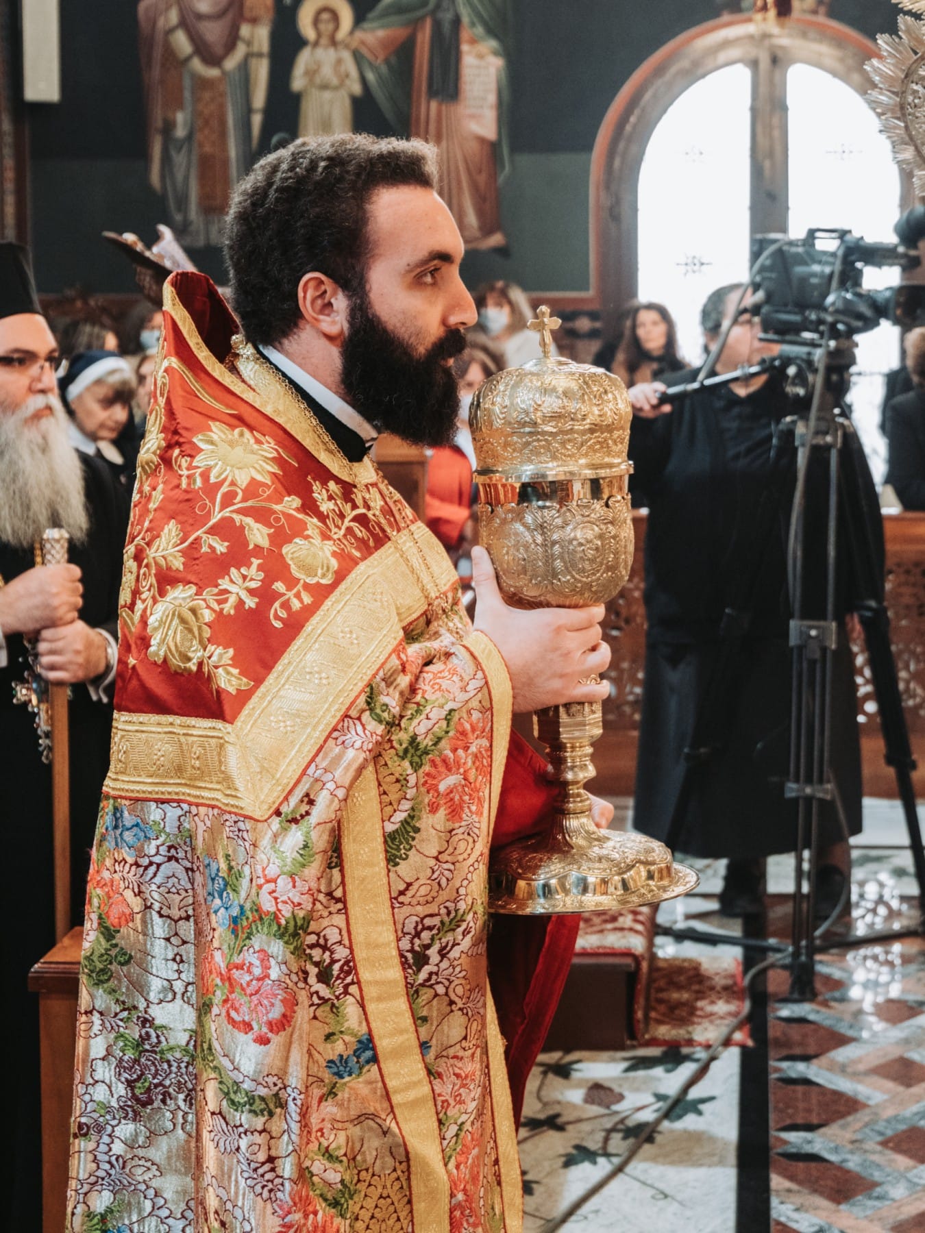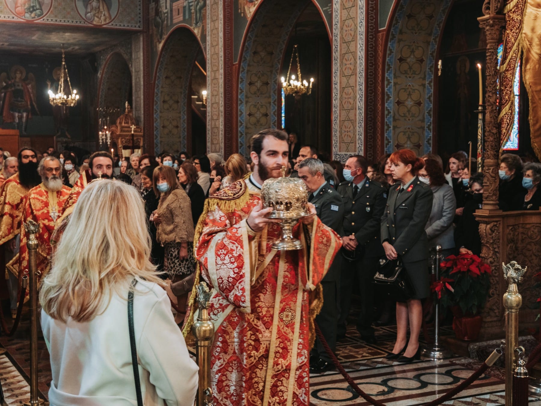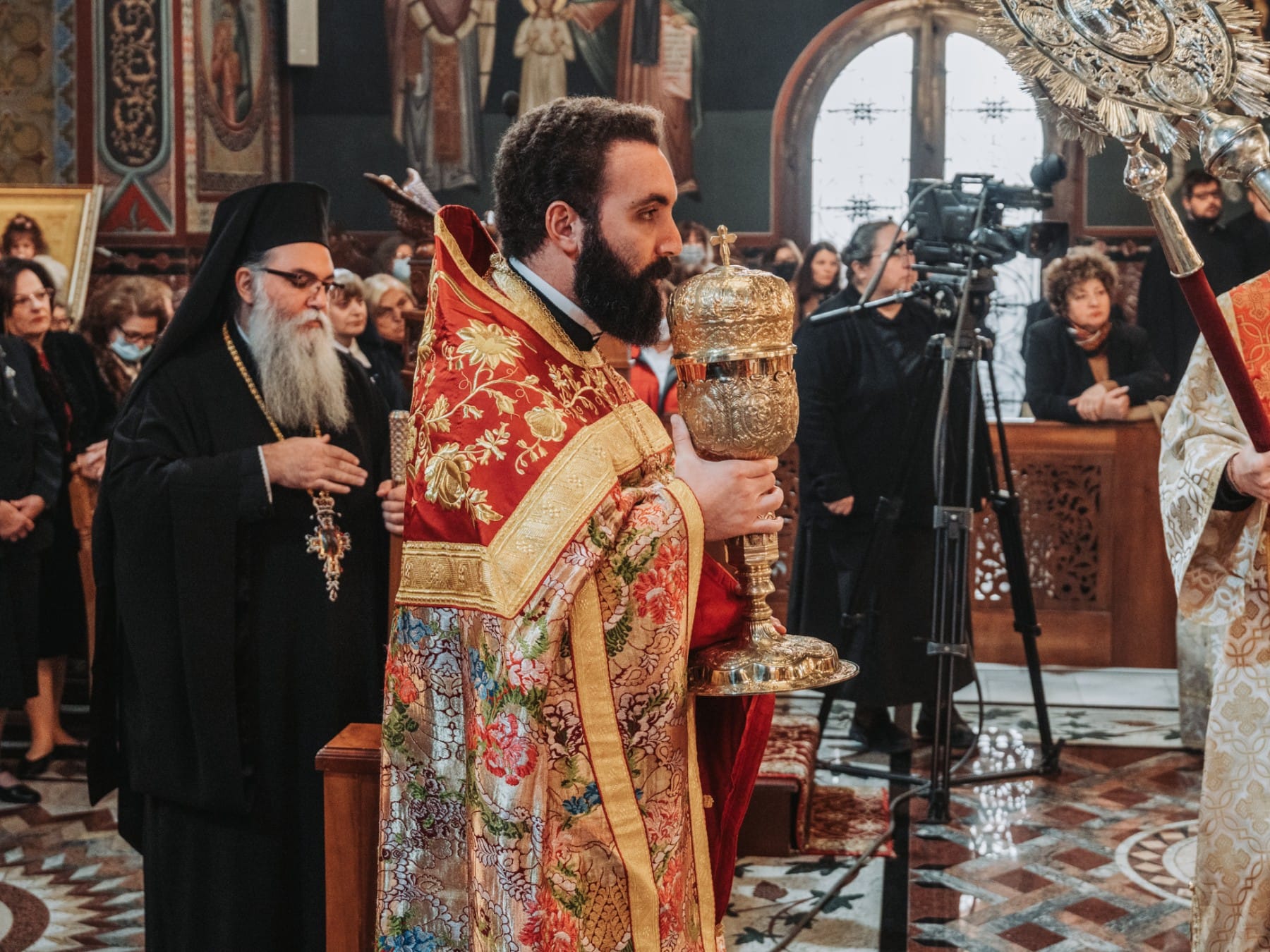 Τον Σεβασμιώτατο συνόδευαν ο Πρωτοσύγκελλος Αρχιμ.π. Νεκτάριος Δαρδανός και ο Διάκονος π.Ιωάννης Καρπασινός.
