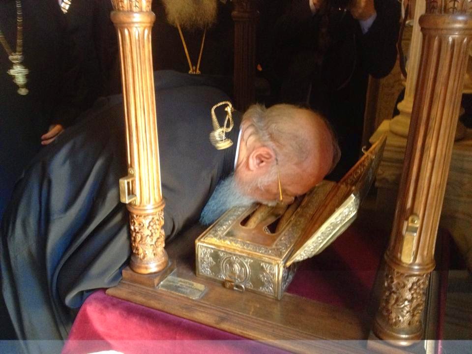Αργότερα ο Παναγιώτατος συνοδευόμενος από τον Σεβασμιώτατο Ποιμενάρχη των νήσων του Αργοσαρωνικού και τις αρχές, μετέβη εις το Επισκοπείον όπου και καθιέρωσε εις την αίθουσα του θρόνου μεγάλη ψηφιδωτή εικόνα του Κυρίου αντίγραφον από την Αγιά Σοφιά.