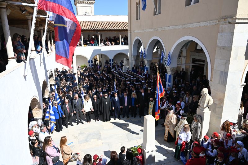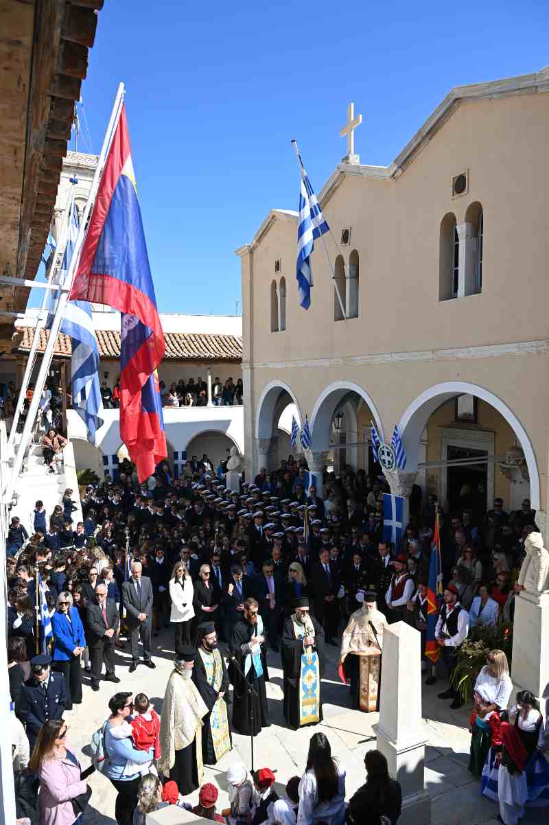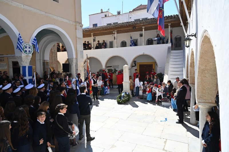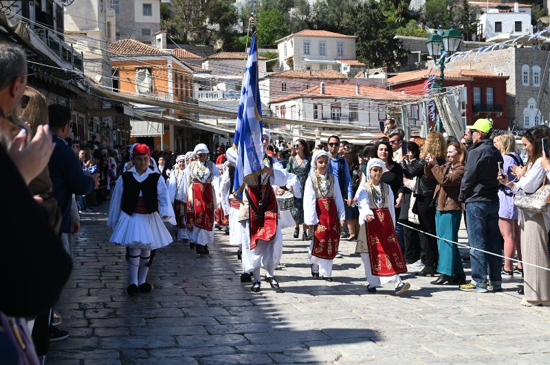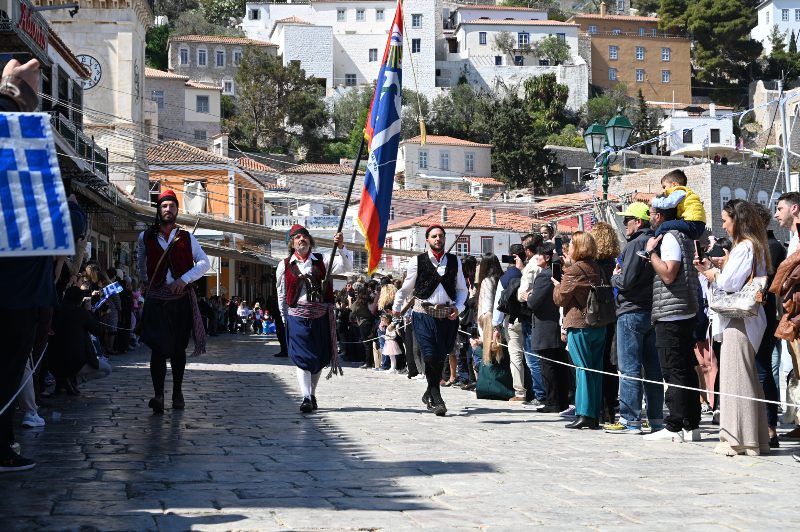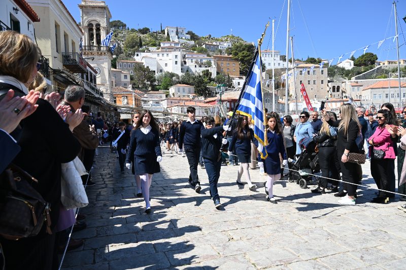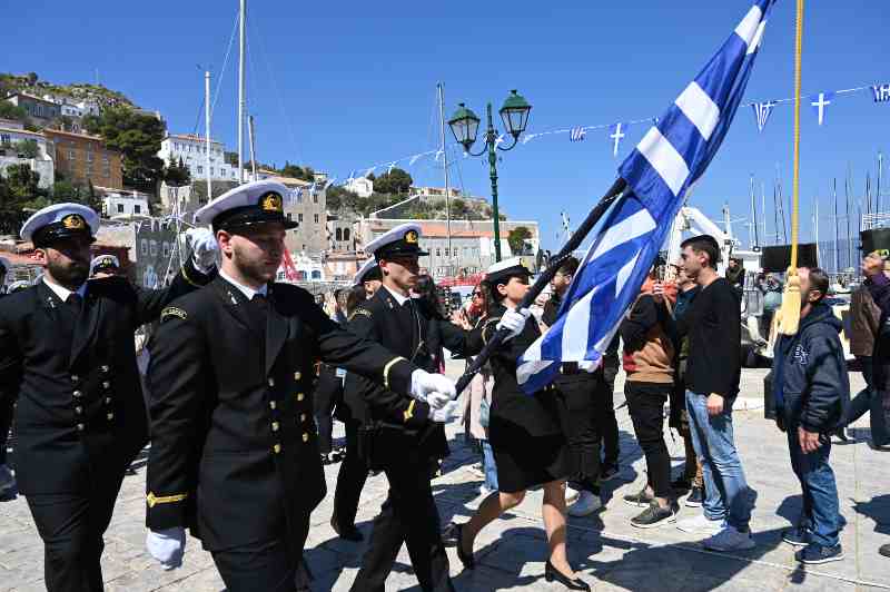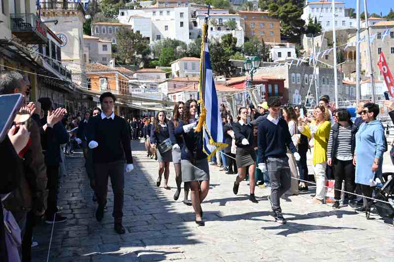 Mε μια ηλιόλουστη, ανοιξιάτικη μέρα, σε κλίμα πατριωτισμού και με κάθε επισημότητα, πραγματοποιήθηκε σήμερα το πρωί ο εορτασμός της 25ης Μαρτίου στην Ύδρα.
