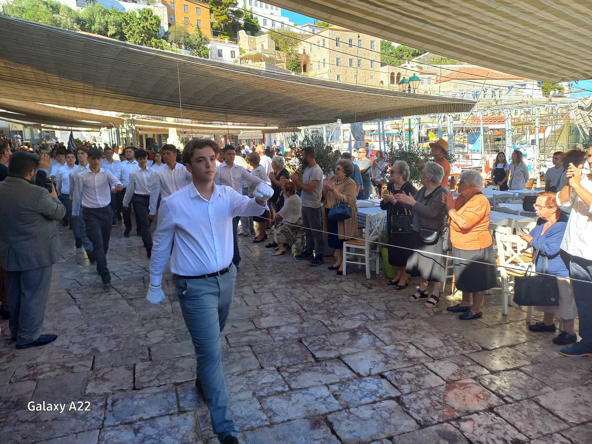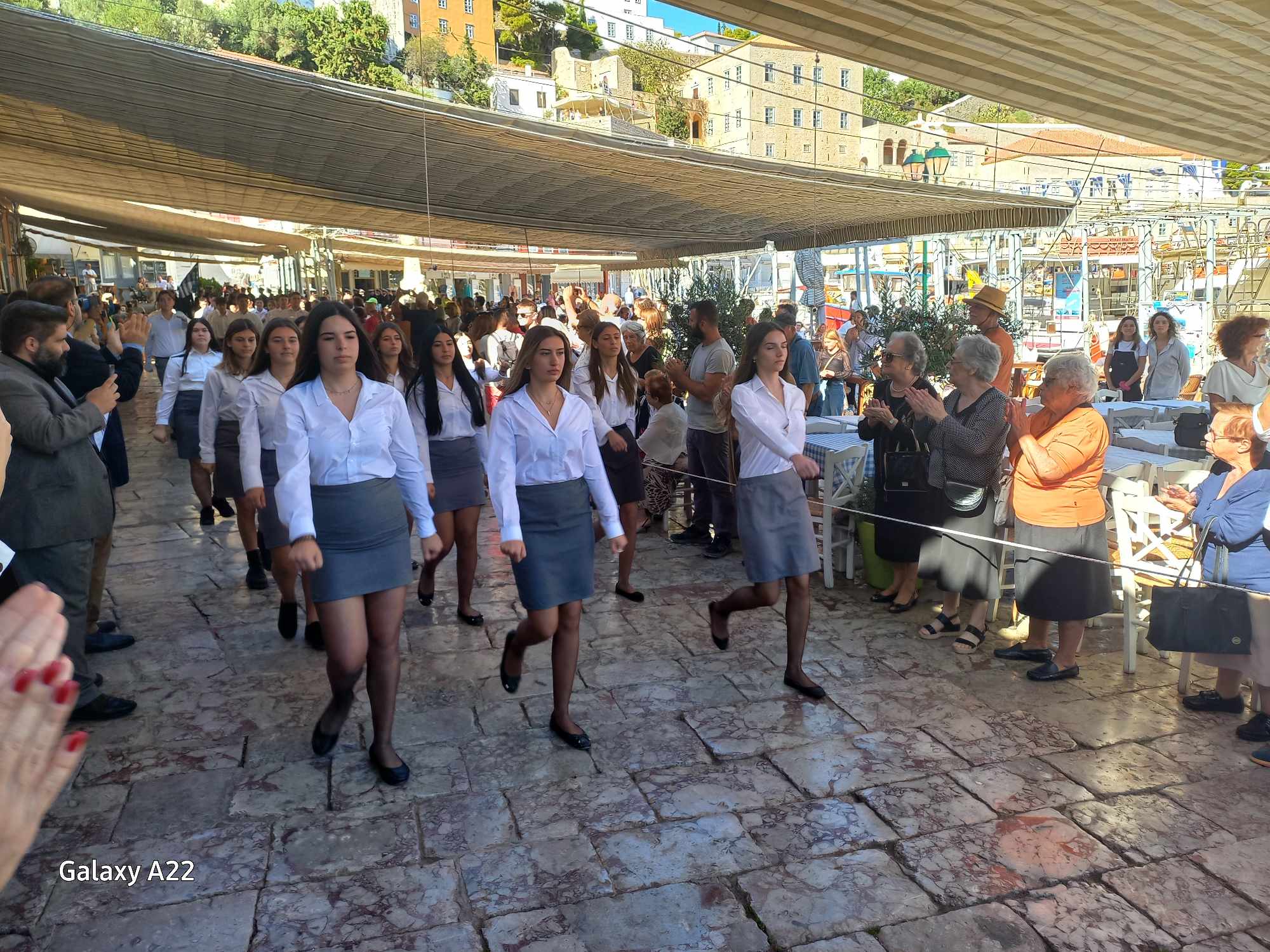 Με τη λήξη, πλήθος κόσμου αποχώρησε από τον προαύλιο χώρο της Μητρόπολης και μεταφέρθηκε στην παραλία όπου παρακολούθησε και χειροκρότησε με ενθουσιασμό την όμορφη παρέλαση των μαθητών των σχολείων και των σπουδαστών της ΑΕΝ μπροστά από τις αρχές του τόπου. Στην παρέλαση έδωσε το "παρών" και ο Μουσικός Σύλλογος Ύδρας.