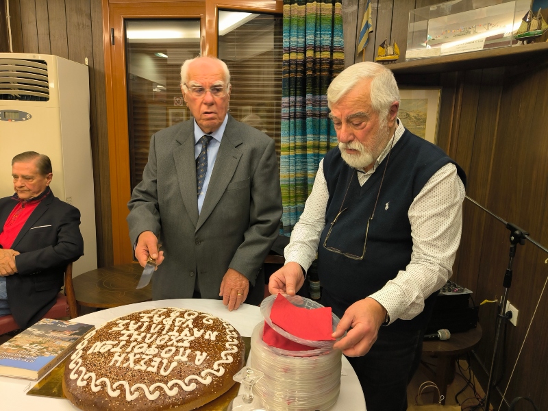Ακολούθησε η κοπή της βασιλόπιτας από τον αρχαιότερο παρόντα απόφοιτο της Σχολής (1955) καπετάν Παναγιώτη Παπαμιχαήλ, ο οποίος, μέσα σε κλίμα έντονης συγκινησιακής φόρτισης, ευχαρίστησε τον Πρόεδρο και το Δ.Σ. της Λέσχης για την τιμή που του έκαναν και ευχήθηκε καλή χρονιά σε όλους και ευόδωση του έργου της Λέσχης για το καλό της αγαπημένης Σχολής και της δημόσιας ναυτικής εκπαίδευσης γενικότερα.