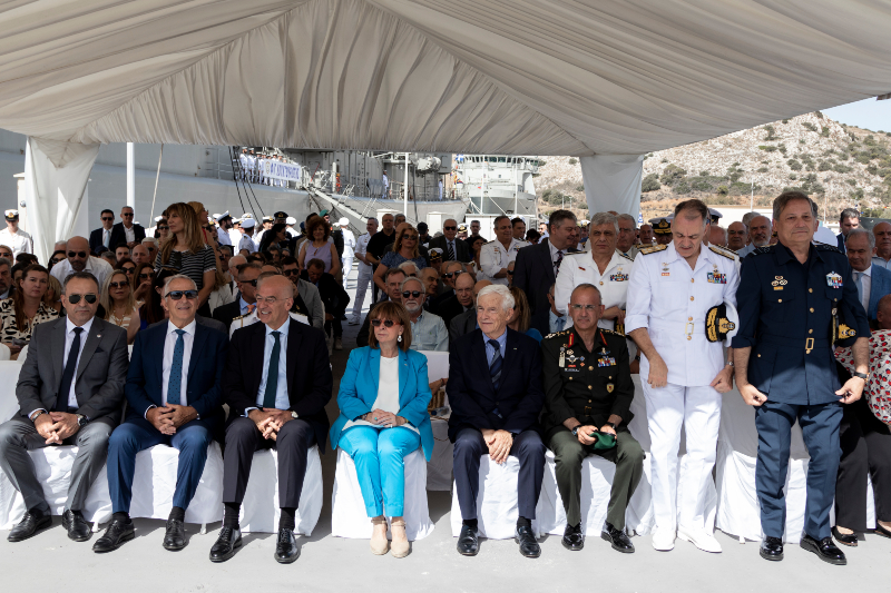 Στη συνέχεια εξήρε το δύσκολο έργο του Πολεμικού Ναυτικού και τους ανθρώπους του, τονίζοντας ότι «Σήμερα η Ελλάδα έχει στα ανατολικά της μία δύστροπη επιθετική και αναθεωρητική γείτονα. Η γείτονα αυτή που σήμερα δρα με προσωρινή ηρεμία, επιβουλεύεται τα εθνικά μας συμφέροντα, τα εθνικά μας δίκαια και το εθνικό μας χώρο, τα εθνικά μας εδάφη. Όπως έχει κάποιος ηγέτης που απειλούνταν τα νησιά του, θα υπερασπιστούμε τα νησιά μας με οποιοδήποτε κόστος, θα πολεμήσουμε μέχρι το τέλος αν χρειαστεί για χρόνια και αν χρειαστεί μόνοι μας. Το Ναυτικό μας σήμερα βρίσκεται σε μια σημαντική καμπή της ιστορίας του. Έχει αναλάβει εδώ και καιρό πολύ πιο σημαντικές ευθύνες και έργο».