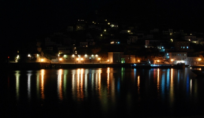 Το μισοφέγγαρο λάμπει στα ψηλά, ρίχνοντας ασημένιο φως, που οι αντανακλάσεις του τρεμοπαίζουν στη θάλασσα. Καΐκια, ιστιοφόρα και ψαρόβαρκες πολύχρωμες βρήκαν απάγκιο όλες μαζί στη στοργή του λιμανιού. Φορώντας η καθεμιά το δικό της όνομα, επιπλέουν παραταγμένες πλάι-πλάι ανόμοιες μεταξύ τους αλλά και τόσο φιλικά δεμένες.