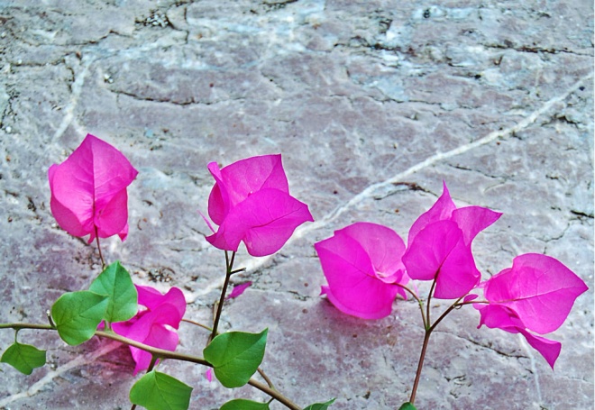 Με το πρώτο φθινοπωρινό αεράκι βλέπεις τα πεσμένα άνθη της μπουκαμβίλιας να τρέχουν εδώ κι εκεί.