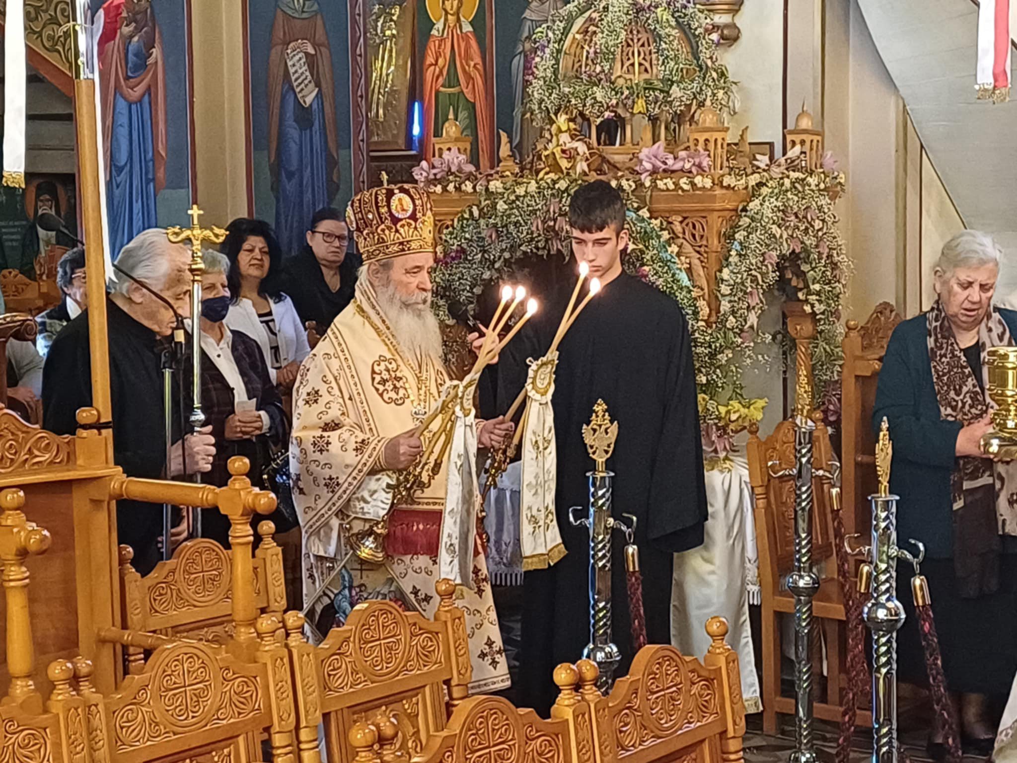 Στο εμπνευσμένο κήρυγμα του αναφέρθηκε στις Μυροφόρες Γυναίκες και στο γενικότερο πνεύμα της Ιεραποστολής αλλά και των ενοριακών δράσεων για την ανακούφιση των αναγκεμένων αδελφών.